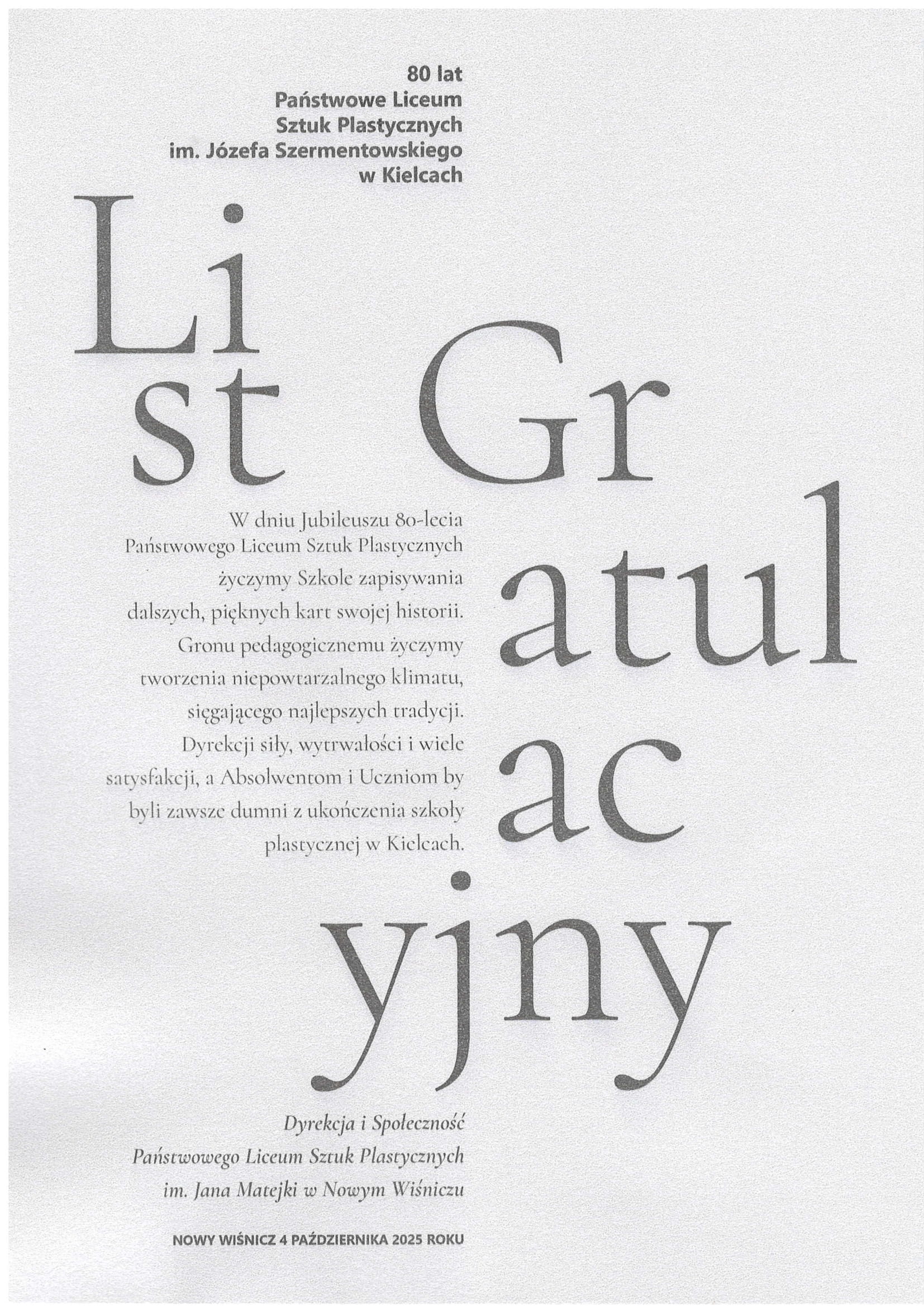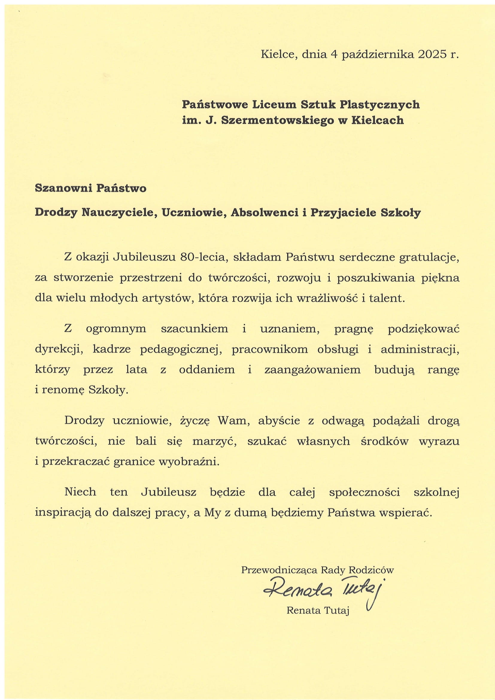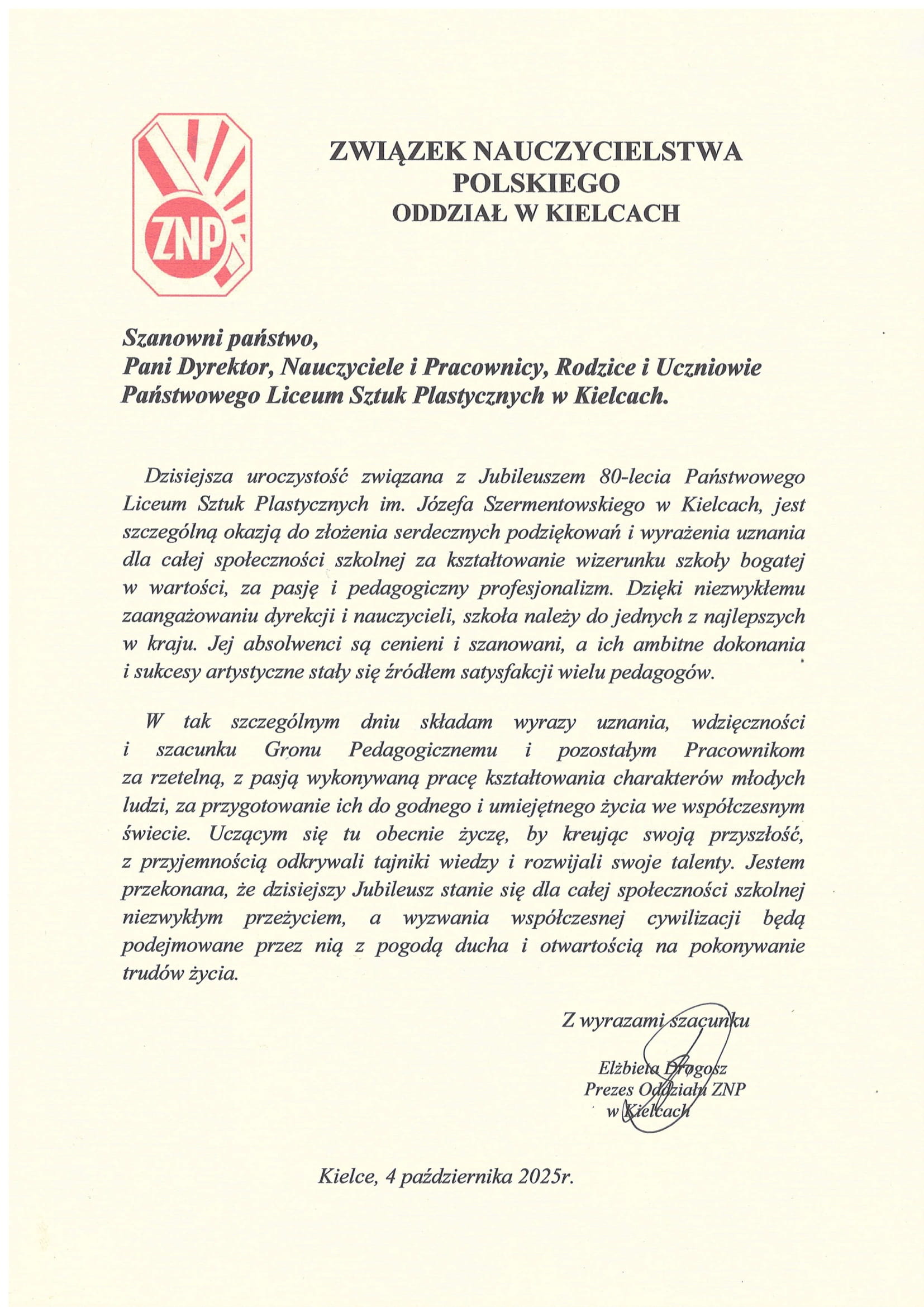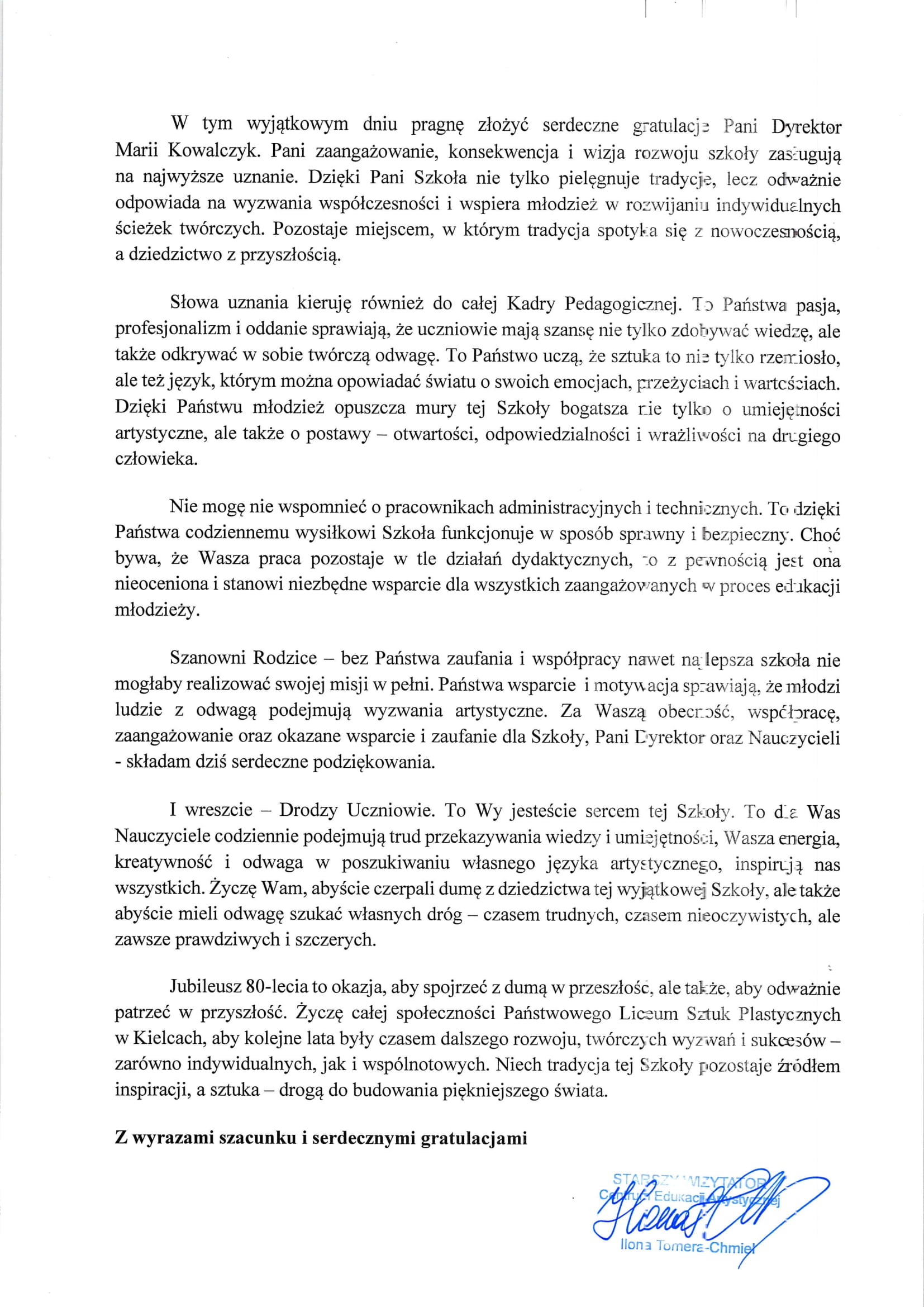 Listy gratulacyjne z okazji Jubileuszu 80-lecia Szkoły