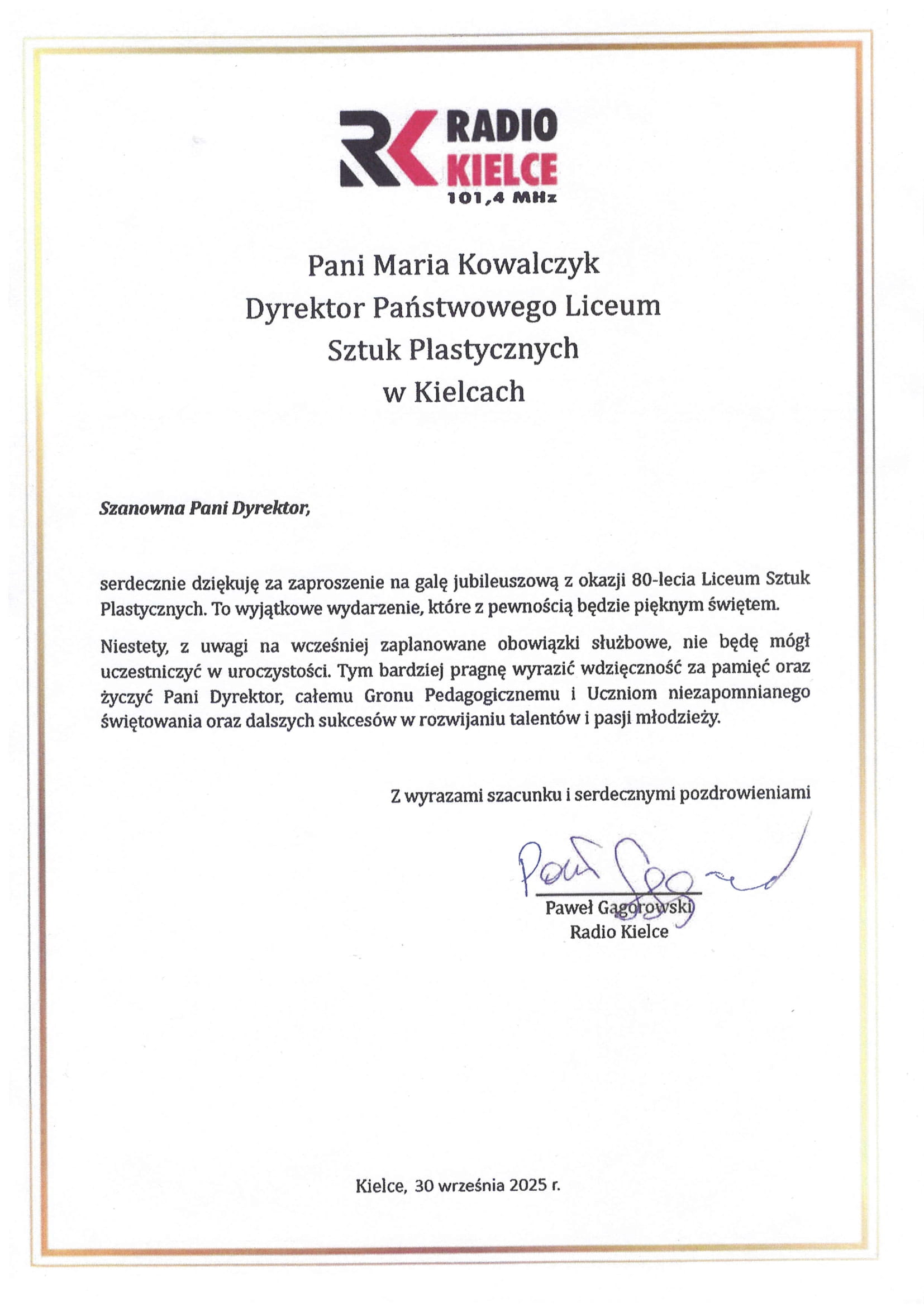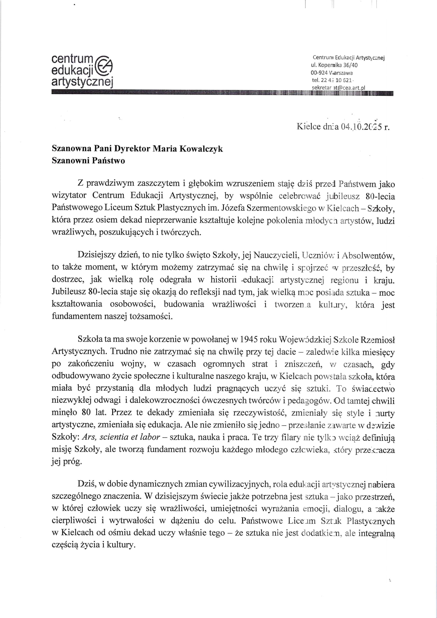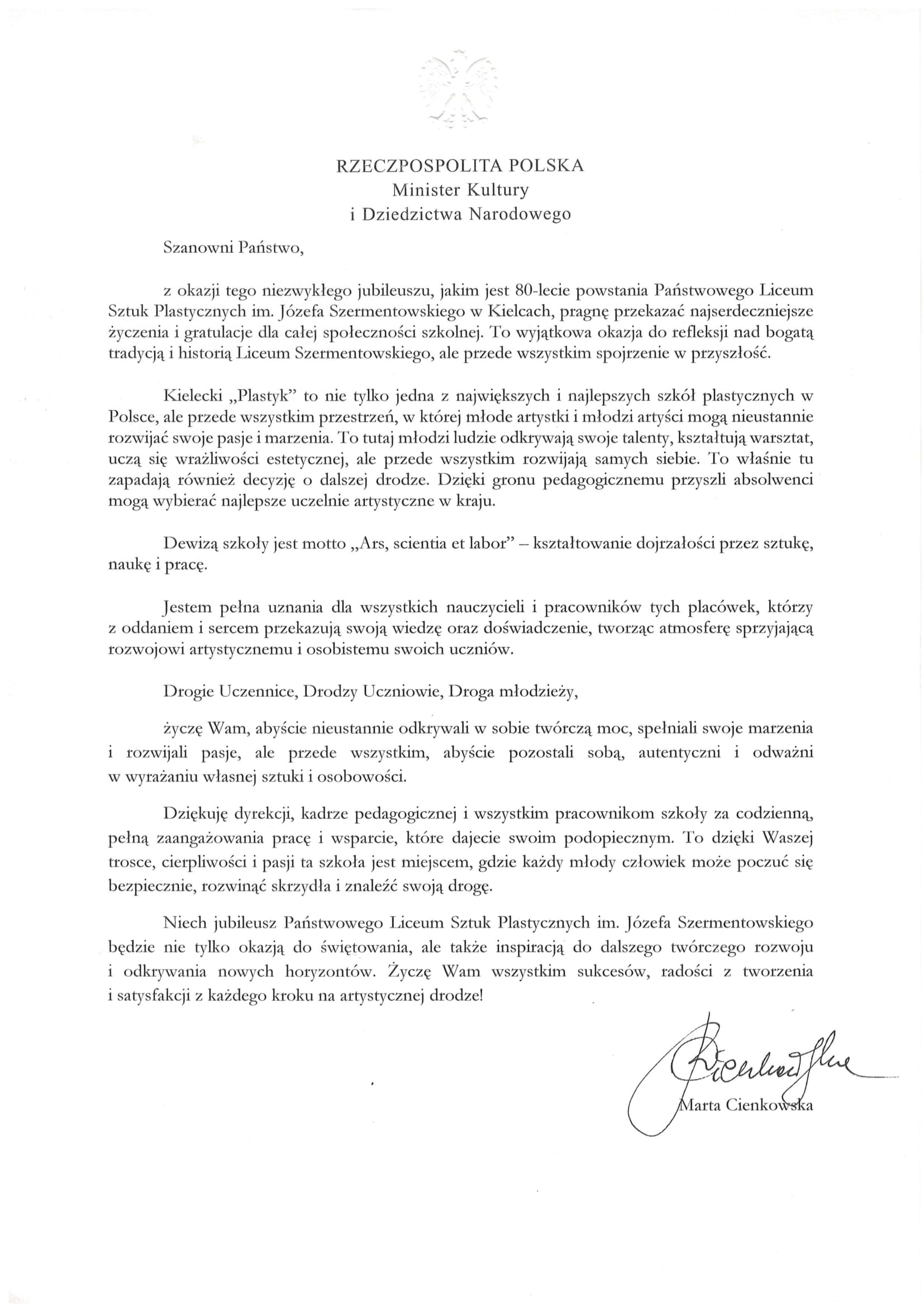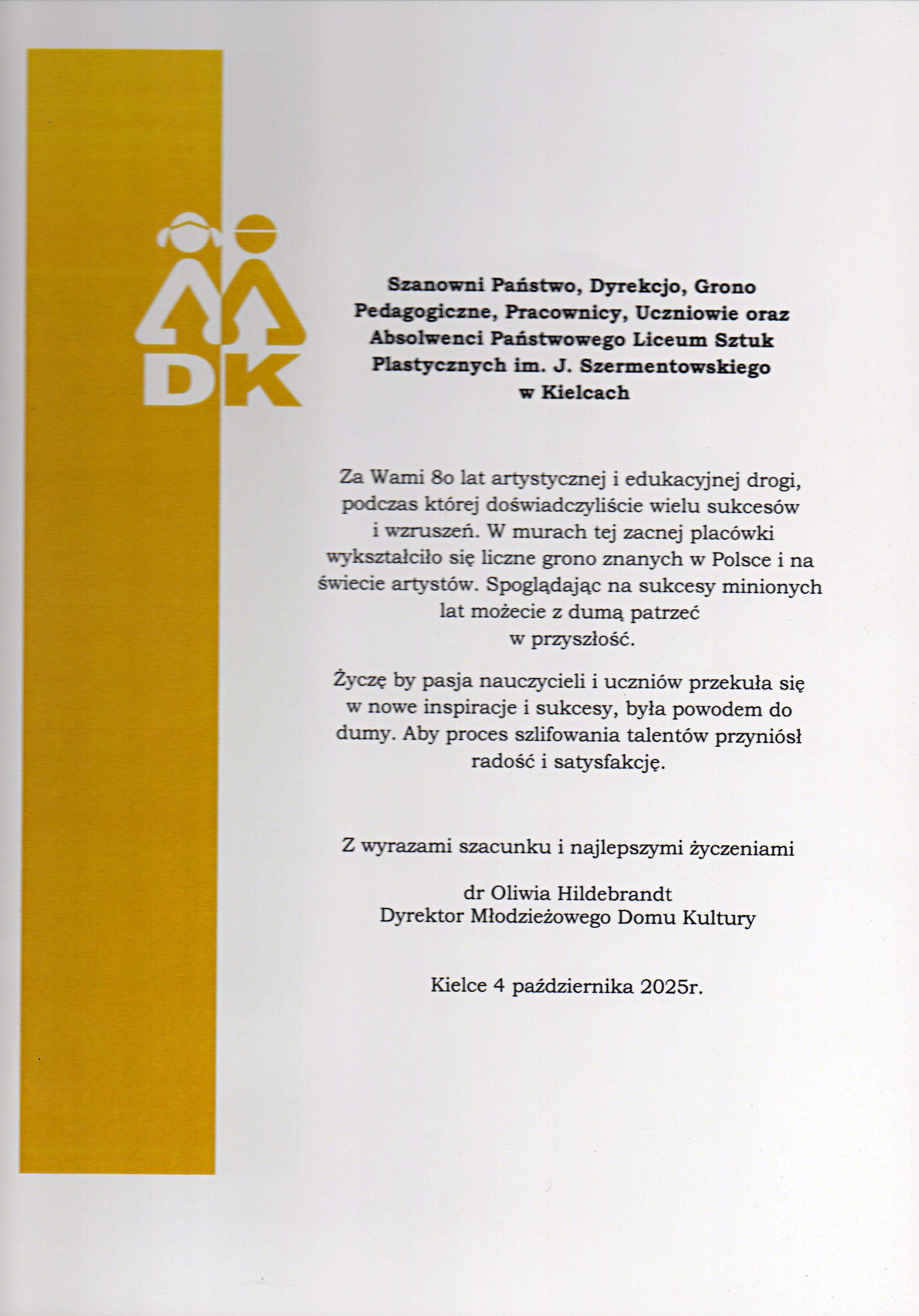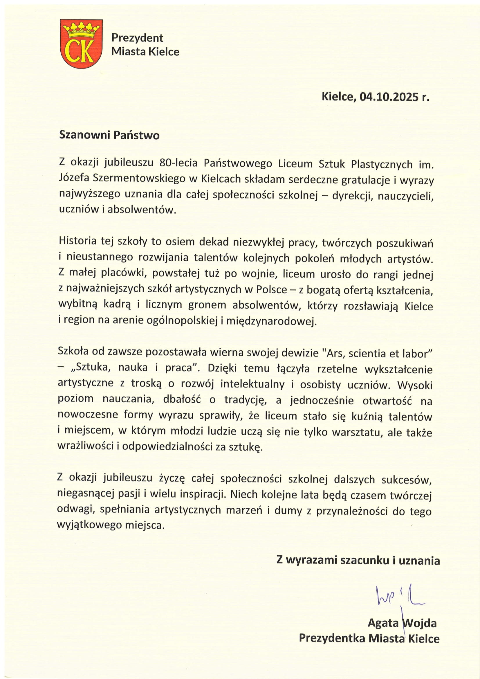 Listy gratulacyjne z okazji Jubileuszu 80-lecia Szkoły