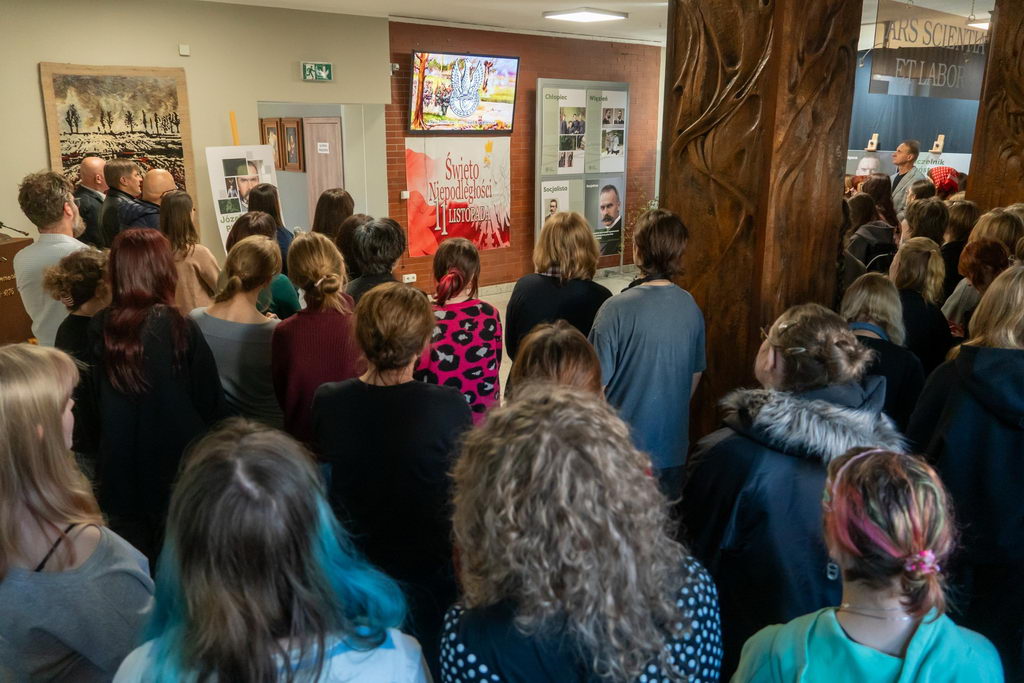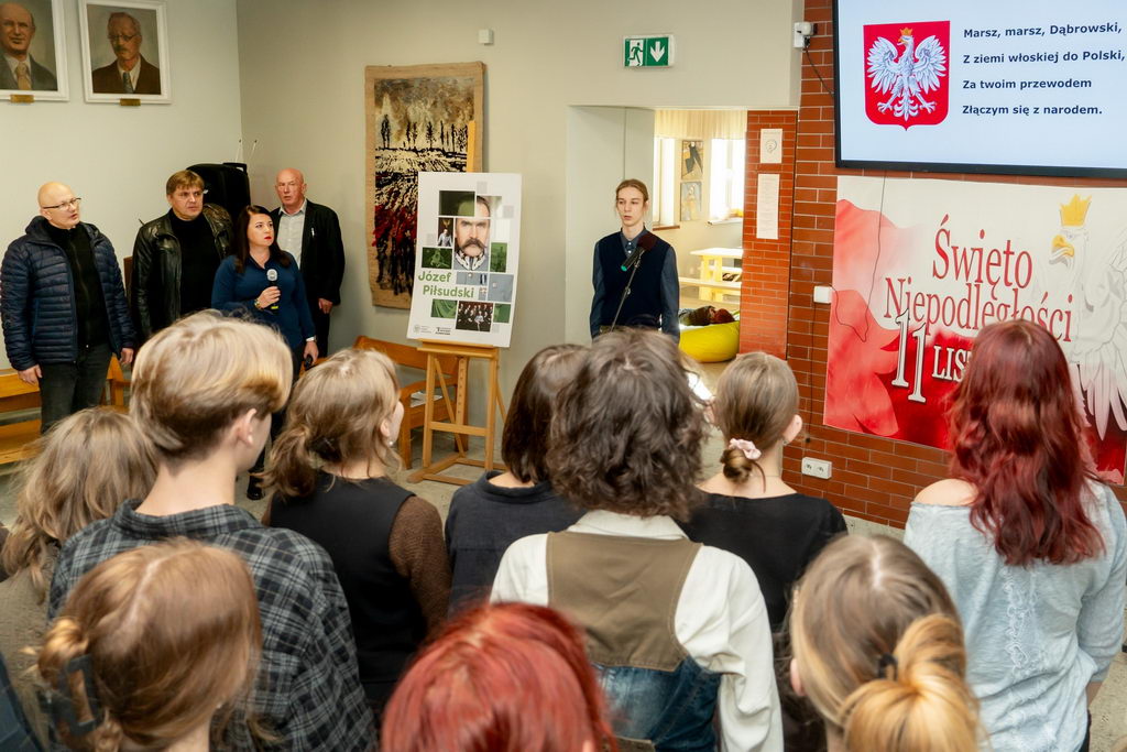 Z okazji Narodowego Święta Niepodległości w naszej szkole 7 listopada odbyła się uroczysta akademia. Wspólnie – Dyrekcja, Grono Pedagogiczne oraz uczniowie – zaśpiewaliśmy hymn państwowy. Kolejnym punktem programu było otwarcie wystawy poświęconej Józefowi Piłsudskiemu – Ojcu Niepodległości. Podczas uroczystości radośnie śpiewaliśmy pieśni patriotyczne i wspominaliśmy tych, którzy walczyli o wolność naszej Ojczyzny.