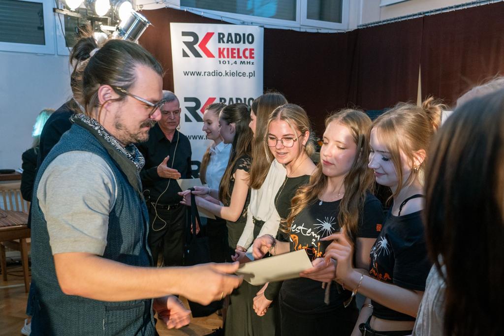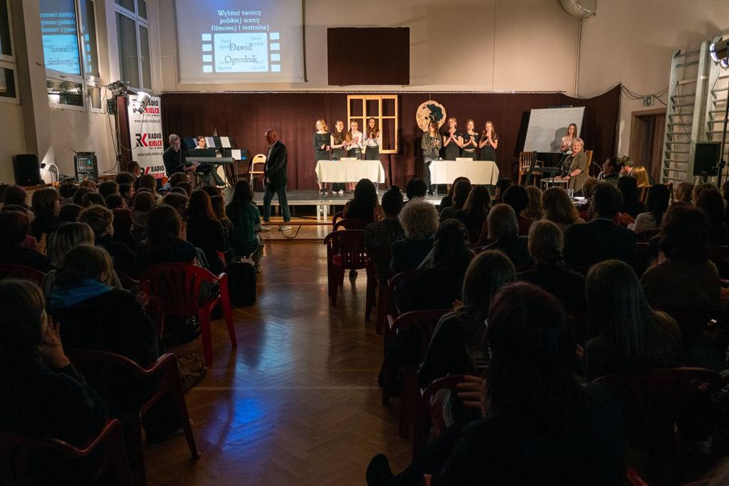 Dawid Ogrodnik – aktor filmowy i teatralny, znany z takich filmów jak „Ostatnia Rodzina”, „Jesteś Bogiem” czy „Johnny”. To już 17. artysta, który spotkał się z uczniami i nauczycielami naszej szkoły. Aktor zostawił odcisk dłoni na ścianie sław naszej szkoły i nie krył wzruszenia z faktu, że znalazł się wśród wyjątkowych i wybitnych dla niego ludzi, takich jak: Jerzy Stuhr, Jerzy Trela, Andrzej Seweryn. Wcześniej odbył się konkurs filmowy zorganizowany przez naszą szkołę z udziałem naszych uczniów oraz uczniów z kieleckiego muzyka. Po konkursie odbyło się spotkanie artysty z uczniami. Sami uczniowie określili je jako bardzo wartościowe. W czasie pobytu w naszej szkole aktor zwiedził wystawę prac uczniów i odwiedził pracownie artystyczne.