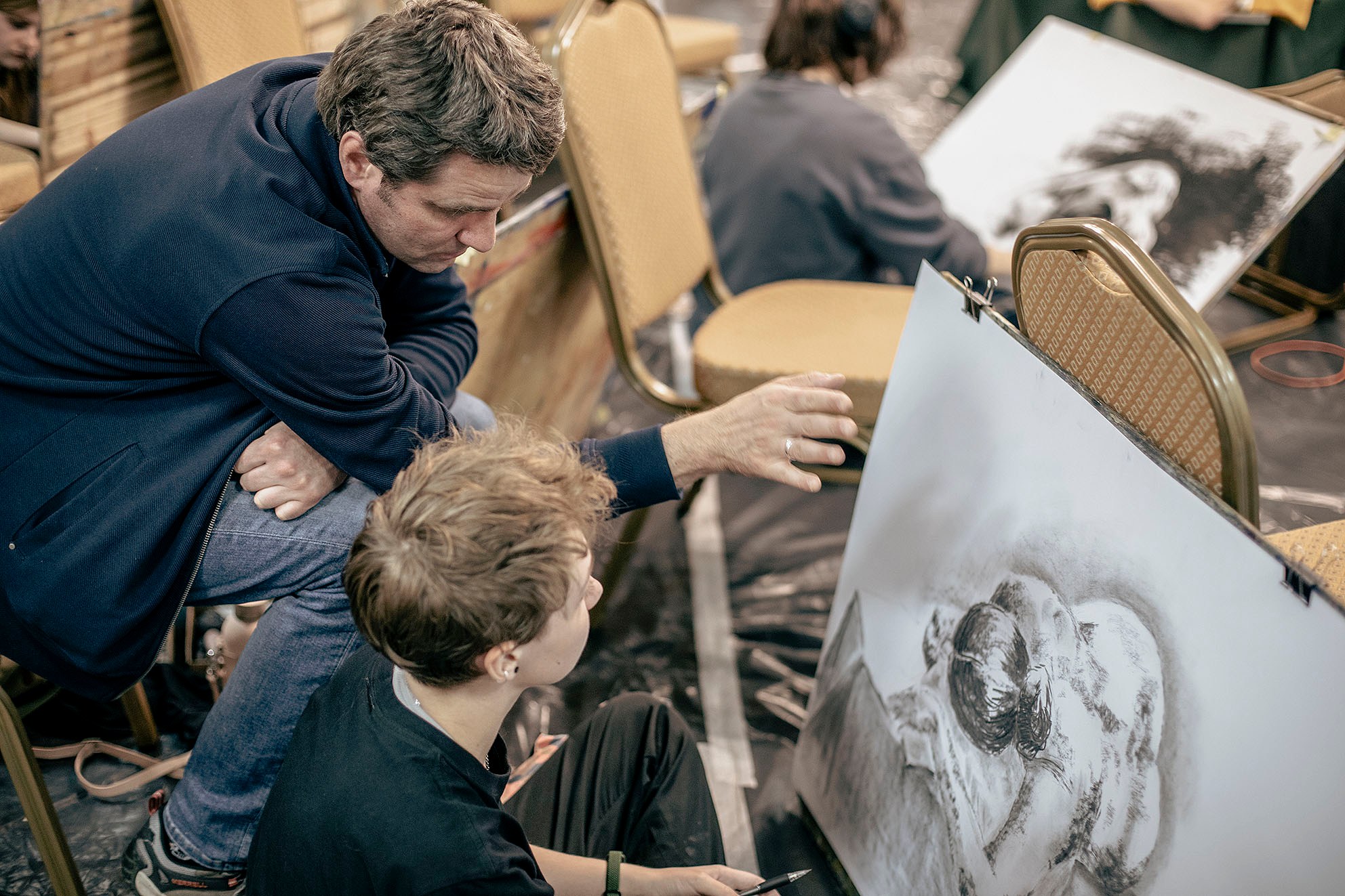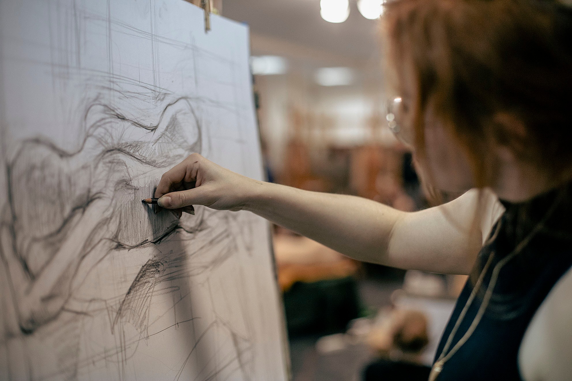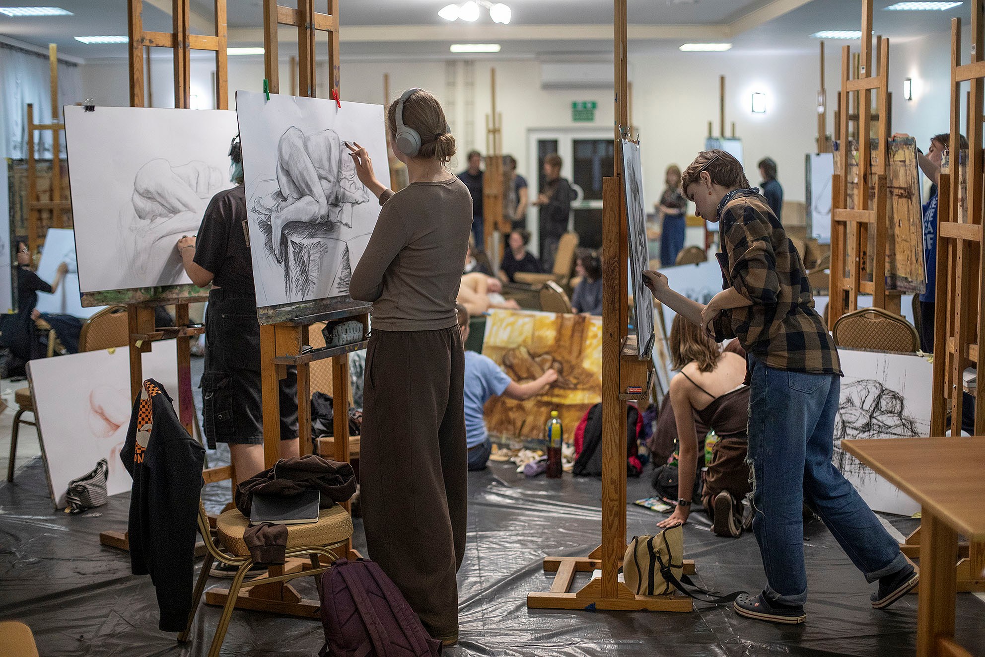 Wieczorne zajęcia rysunkowe stały się okazją do skupienia i ćwiczenia warsztatu – w ciszy i skupieniu powstawały szkice, studia studium postaci i aktu.