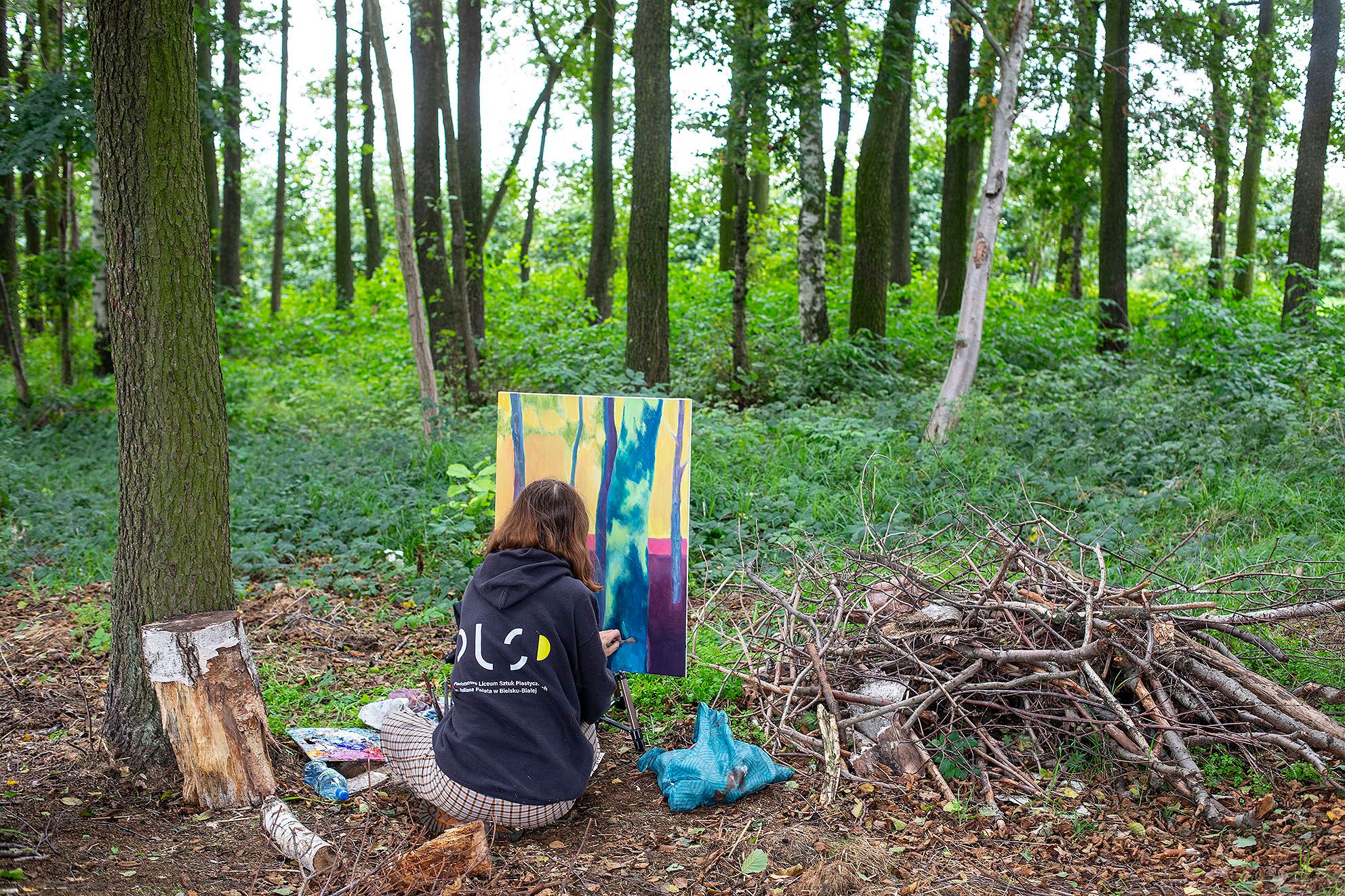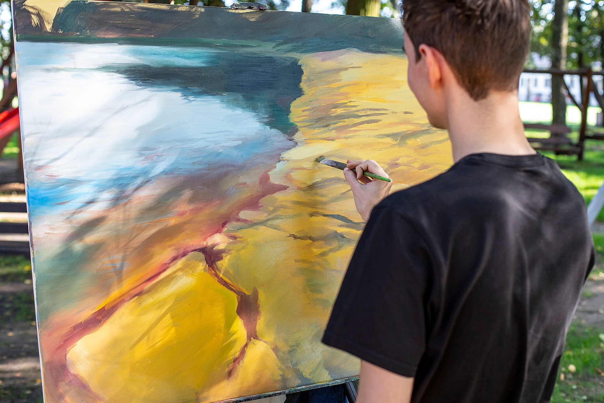 W ciągu dnia młodzież oddawała się malowaniu pejzaży, czerpiąc inspirację z otaczającej przyrody i nastrojowych zakątków okolic Rychwała. Z wielkim zaangażowaniem przenosili na płótno barwy krajobrazu, światło i charakter miejsca, tworząc prace pełne indywidualnych interpretacji i wrażliwości artystycznej.