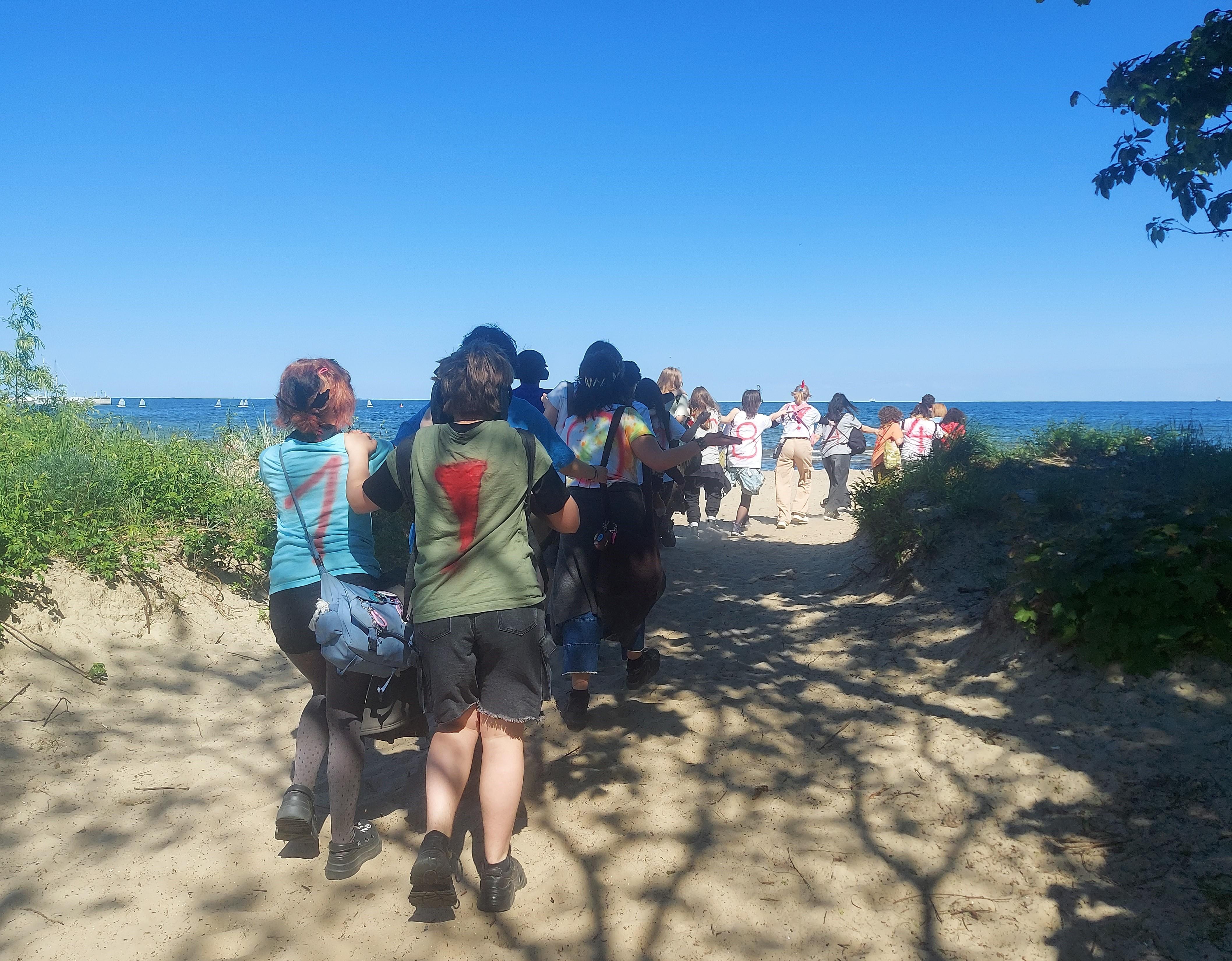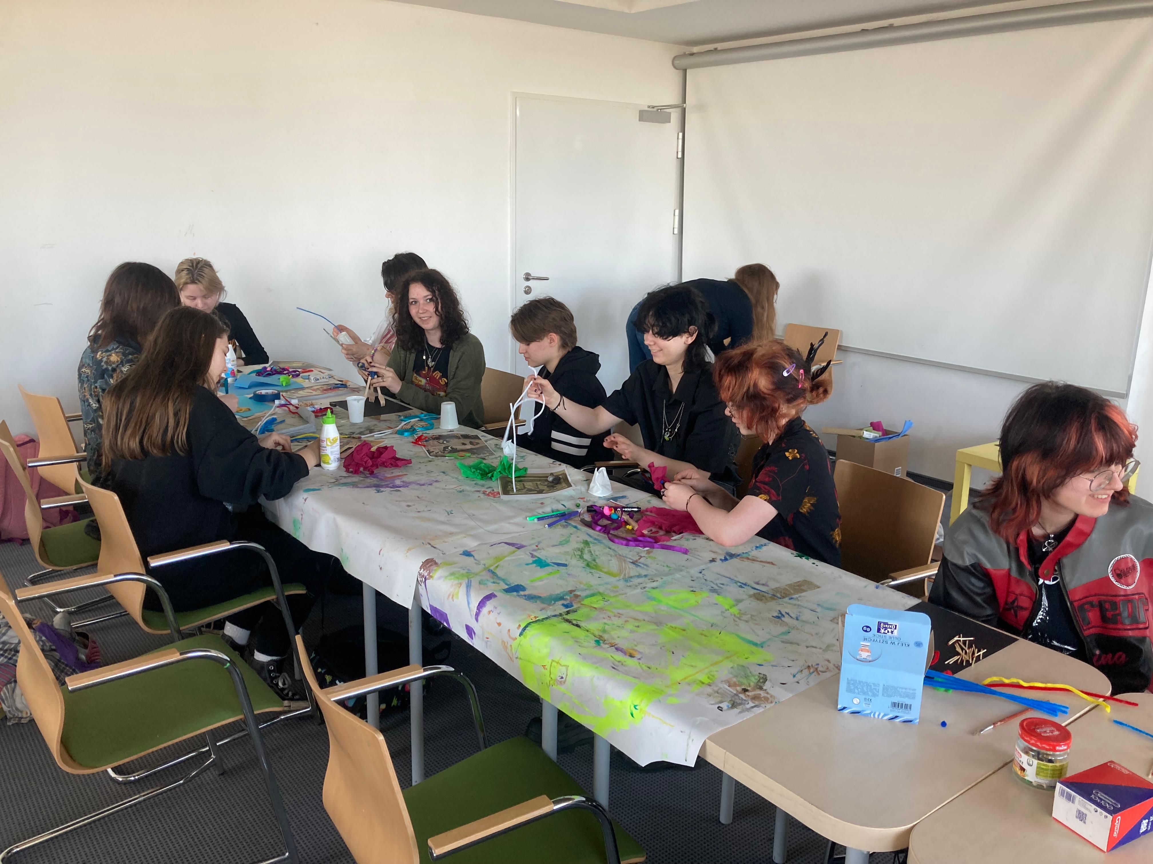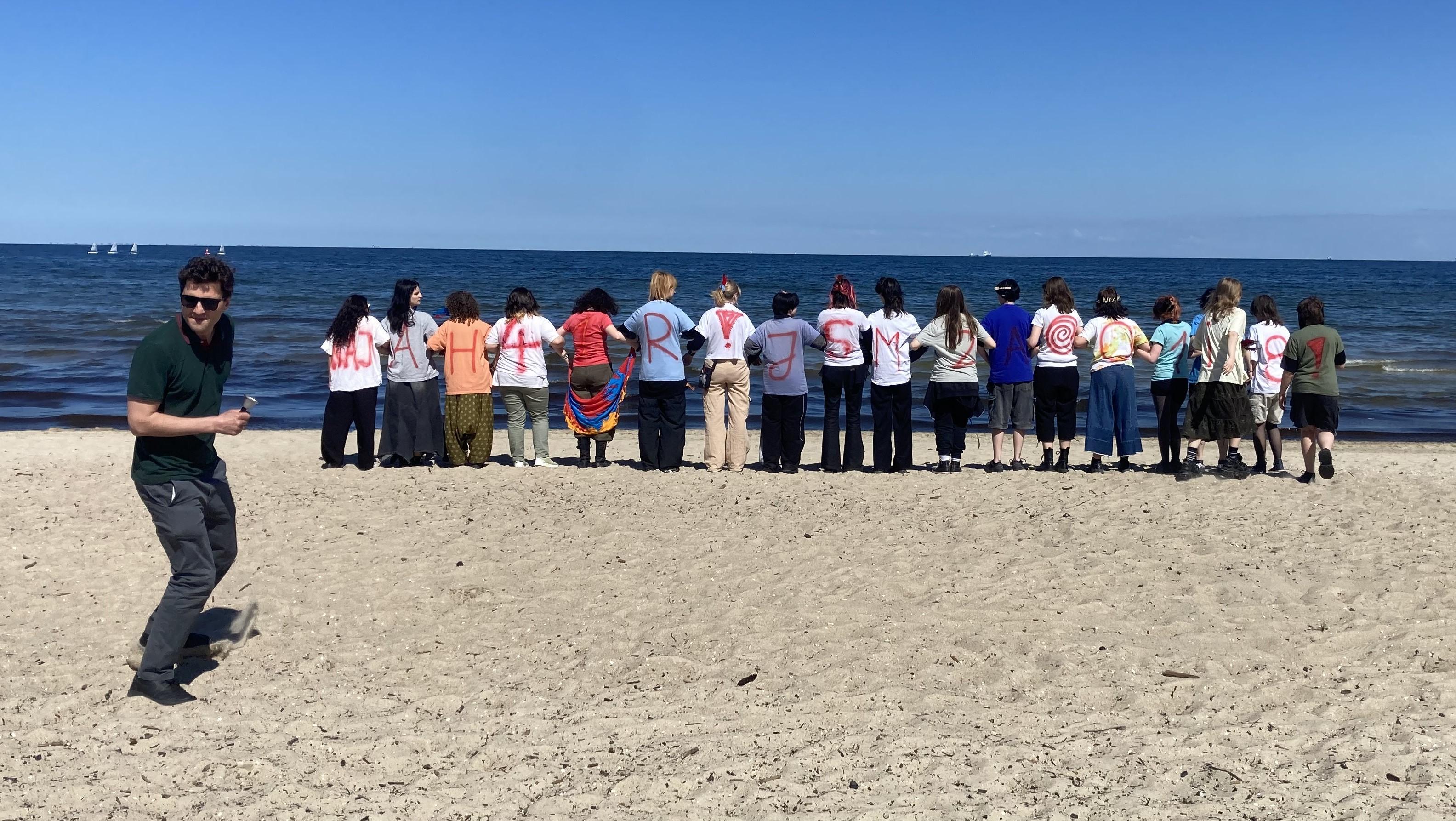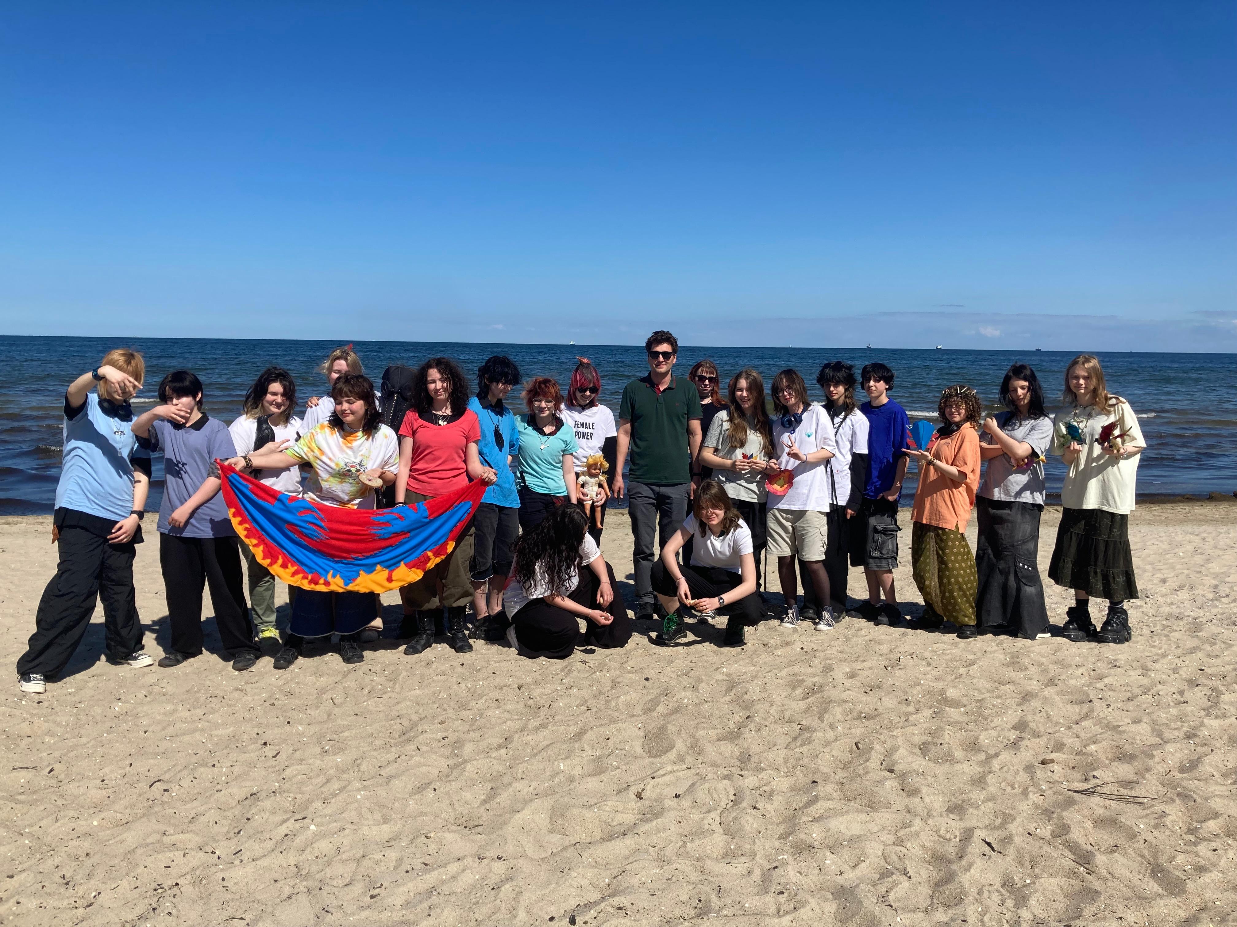 Wzięliśmy również udział w warsztatach prowadzone przez Panią Paulę Nastaj, podczas których z dostępnych materiałów wykonaliśmy efektowne asamblaże. Podsumowaniem naszego pobytu był wcześniej zaaranżowany happening, który rozpoczął się w budynku galerii a zakończył na plaży sopockiej - poprzez akcję, ruch i utworzony barwny napis chcieliśmy podkreślić pamięć o Władysławie Hasiorze.