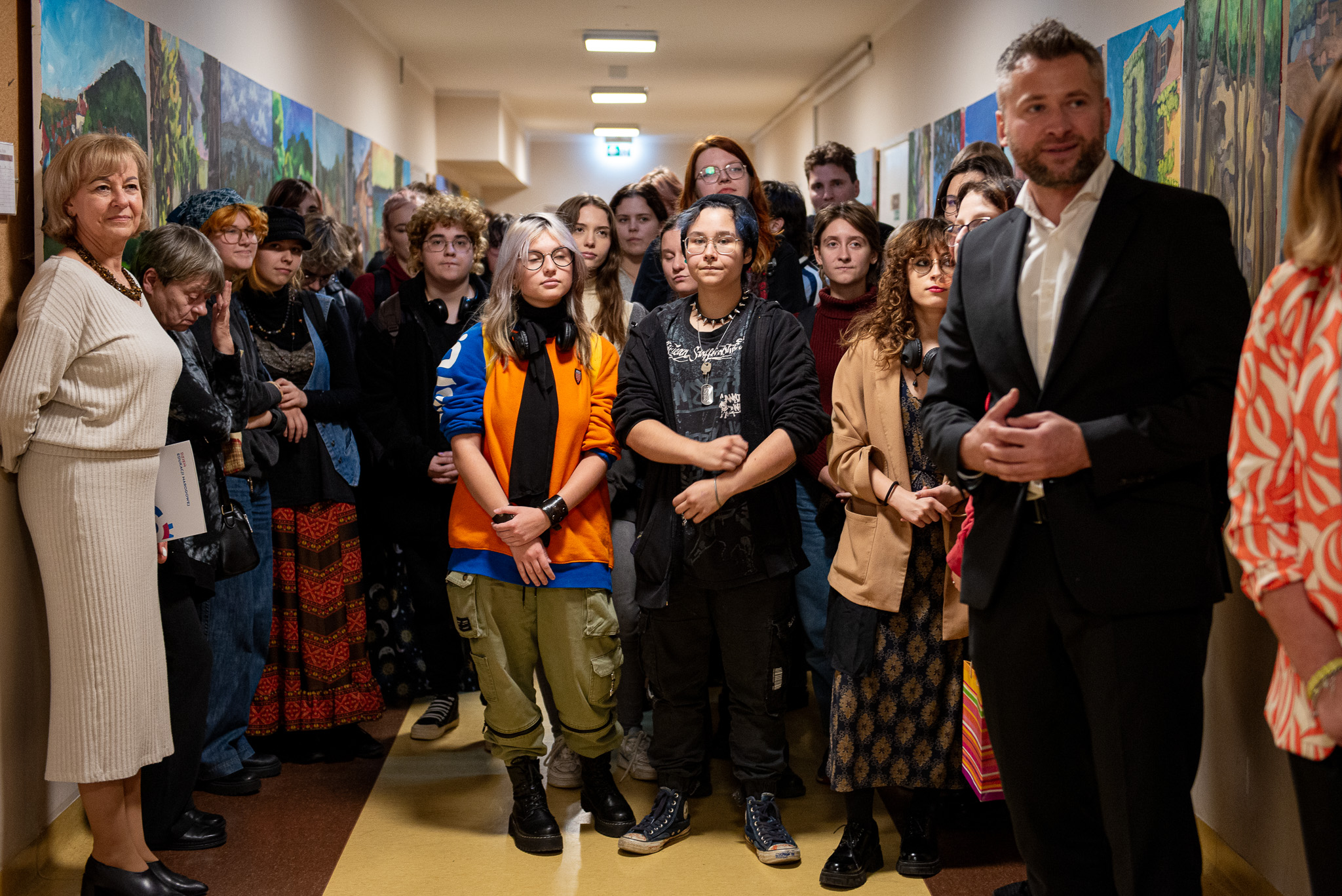 Z okazji Dnia Edukacji Narodowej, obchodzonego w naszej szkole 13 października 2023 roku, dyrektor szkoły pan Łukasz Drożdżal otworzył wystawę prac uczniów klasy VA i VB. Prezentowane prace powstawały podczas pleneru malarskiego w czerwcu 2023 roku. Młodzież, wtedy klas IV, udała się na plener do urokliwego Kazimierza Dolnego, gdzie przez 2 tygodnie doskonalili swoje umiejętności malarskie.