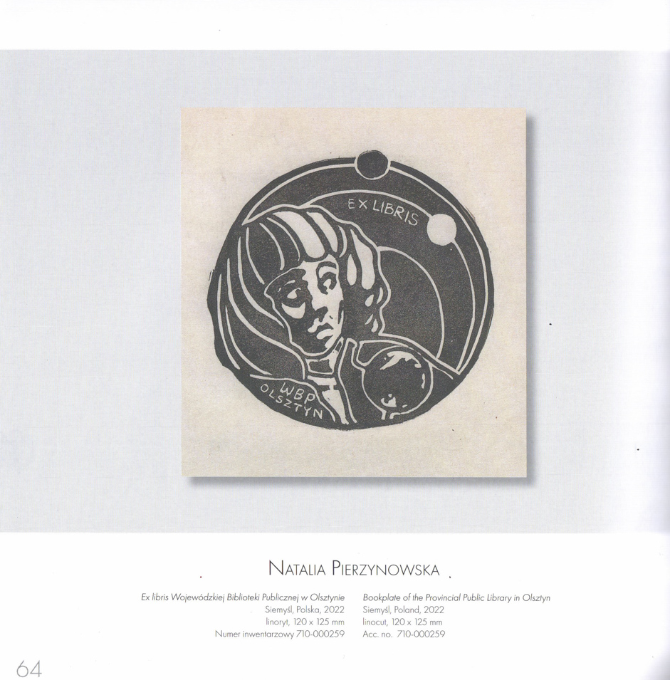 Linoryty Natalii Pierzynowskiej można obejrzeć w pięknie wydanym katalogu Ex Libris pt. „Ruszył Ziemię”. Katalog zawiera najlepsze prace z międzynarodowego konkursu na ex libris organizowanego z okazji 550. rocznicy urodzin Mikołaja Kopernika. Organizatorem konkursu jest Wojewódzka Biblioteka Publiczna w Olsztynie. Natalia Pierzynowska wykonała konkursowe prace w pracowni projektowania graficznego, która prowadzona jest przez panią Ingę Marciszuk-Mazur.