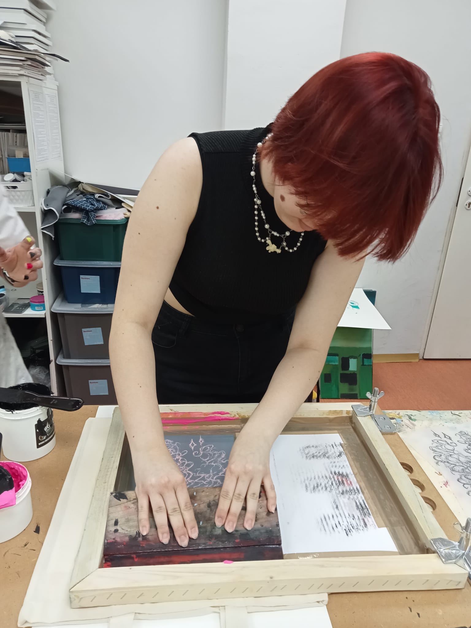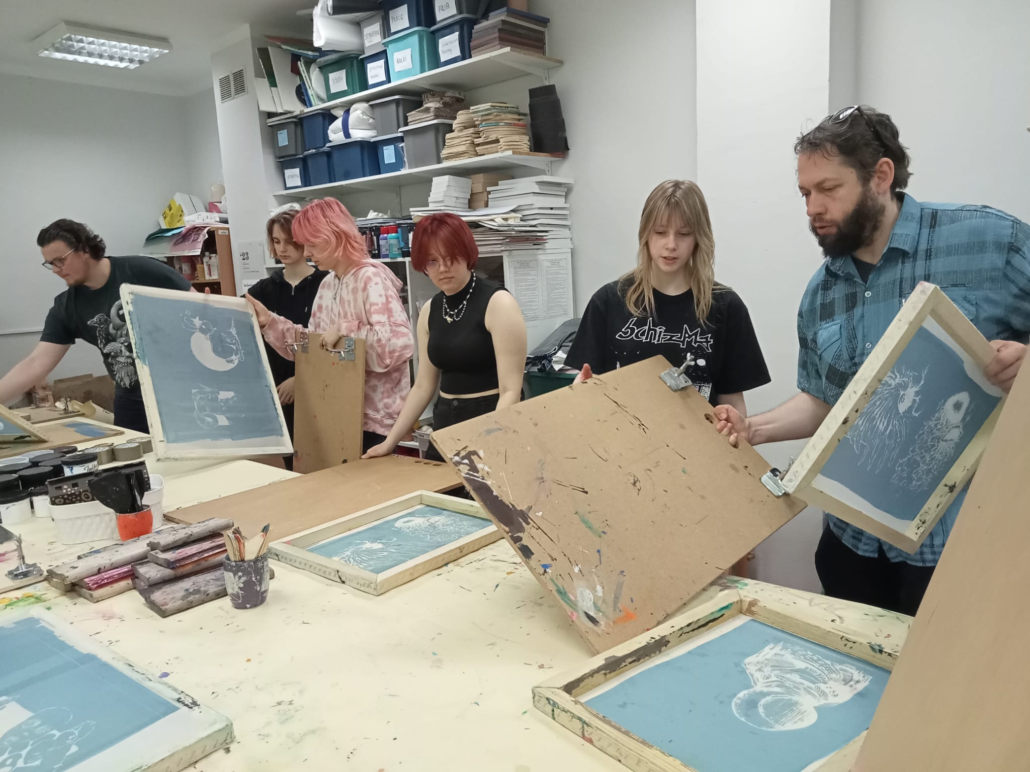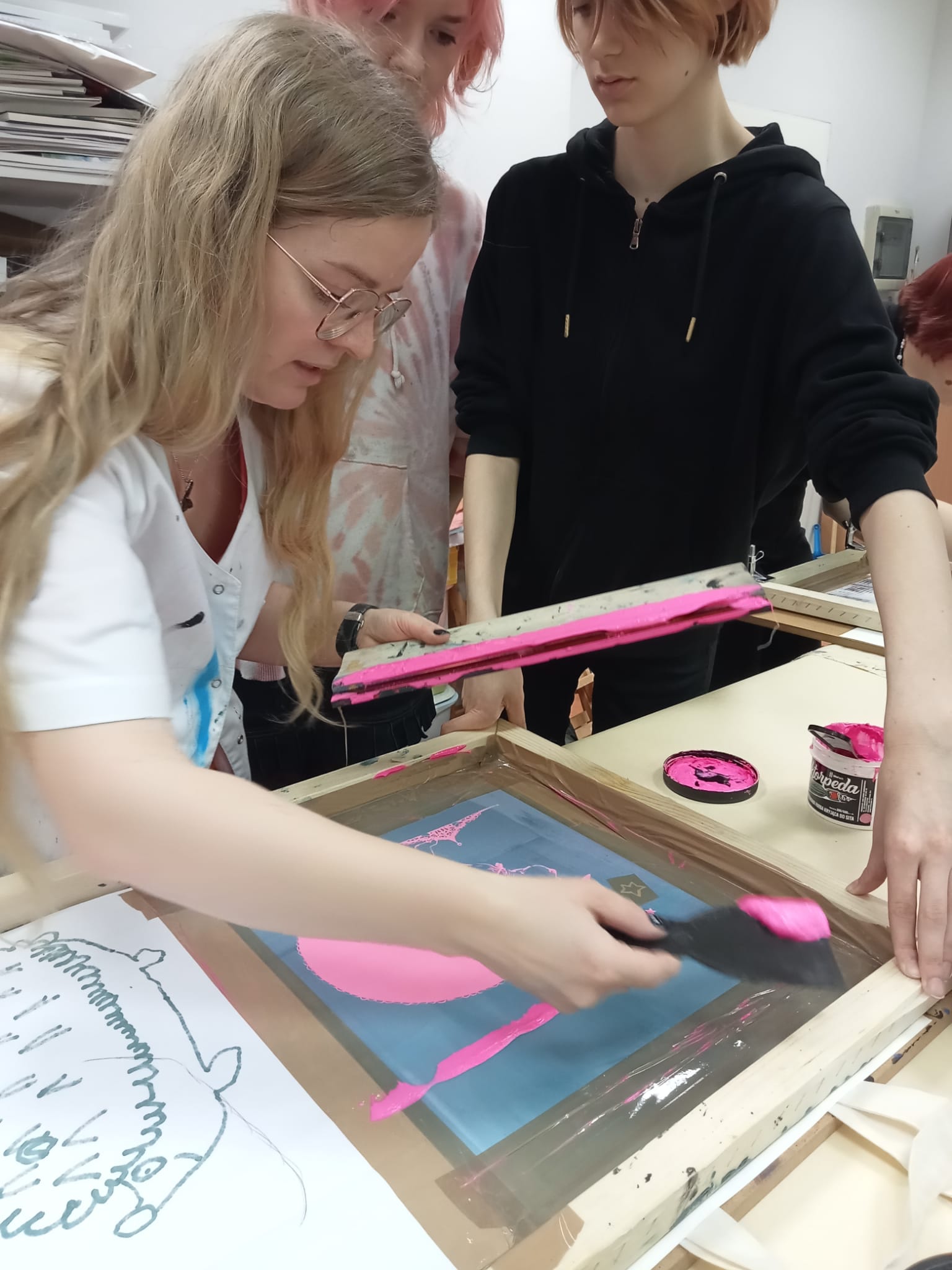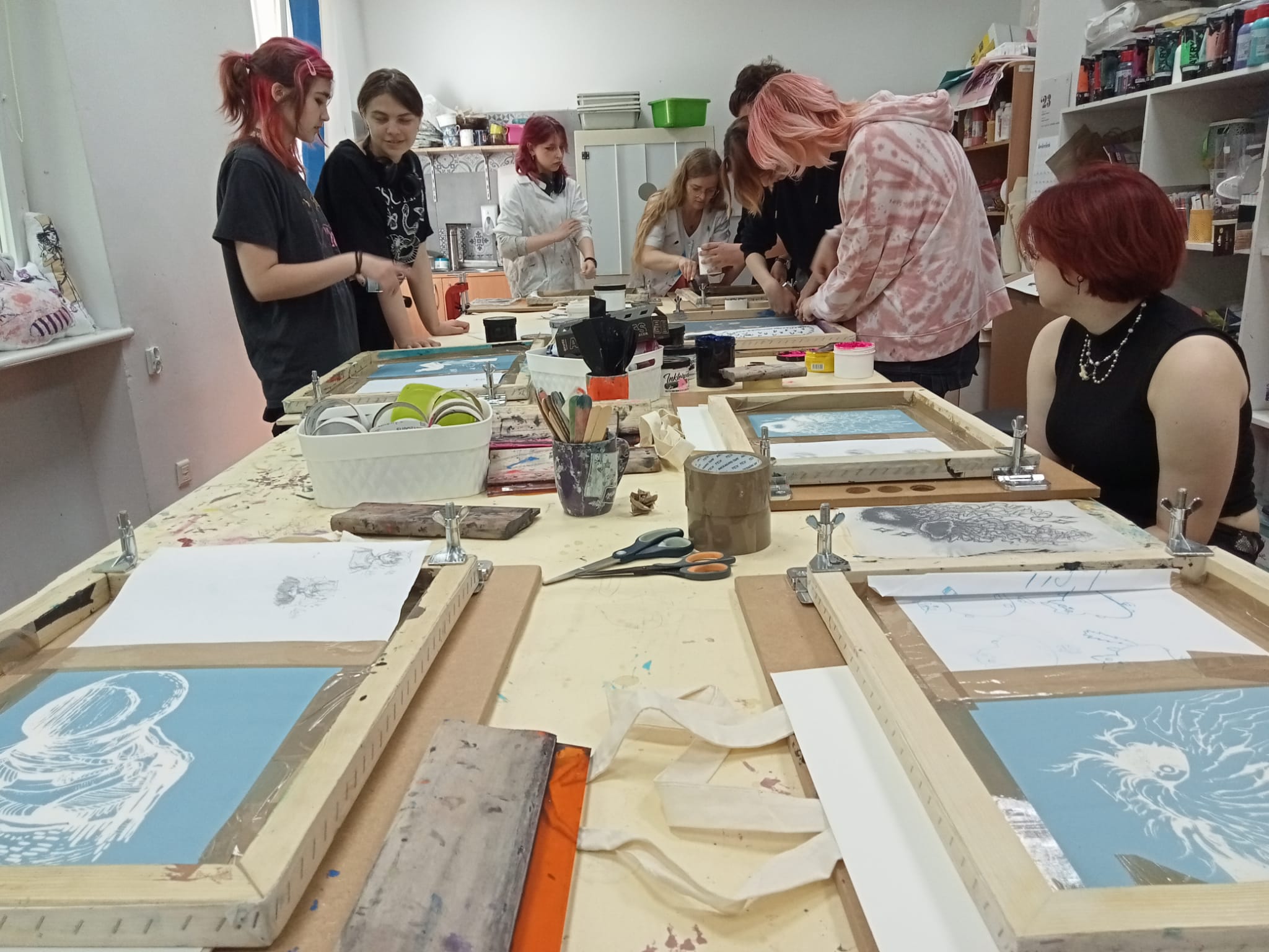 Warsztaty z sitodruku w Pałacu Młodzieży w Koszalinie.