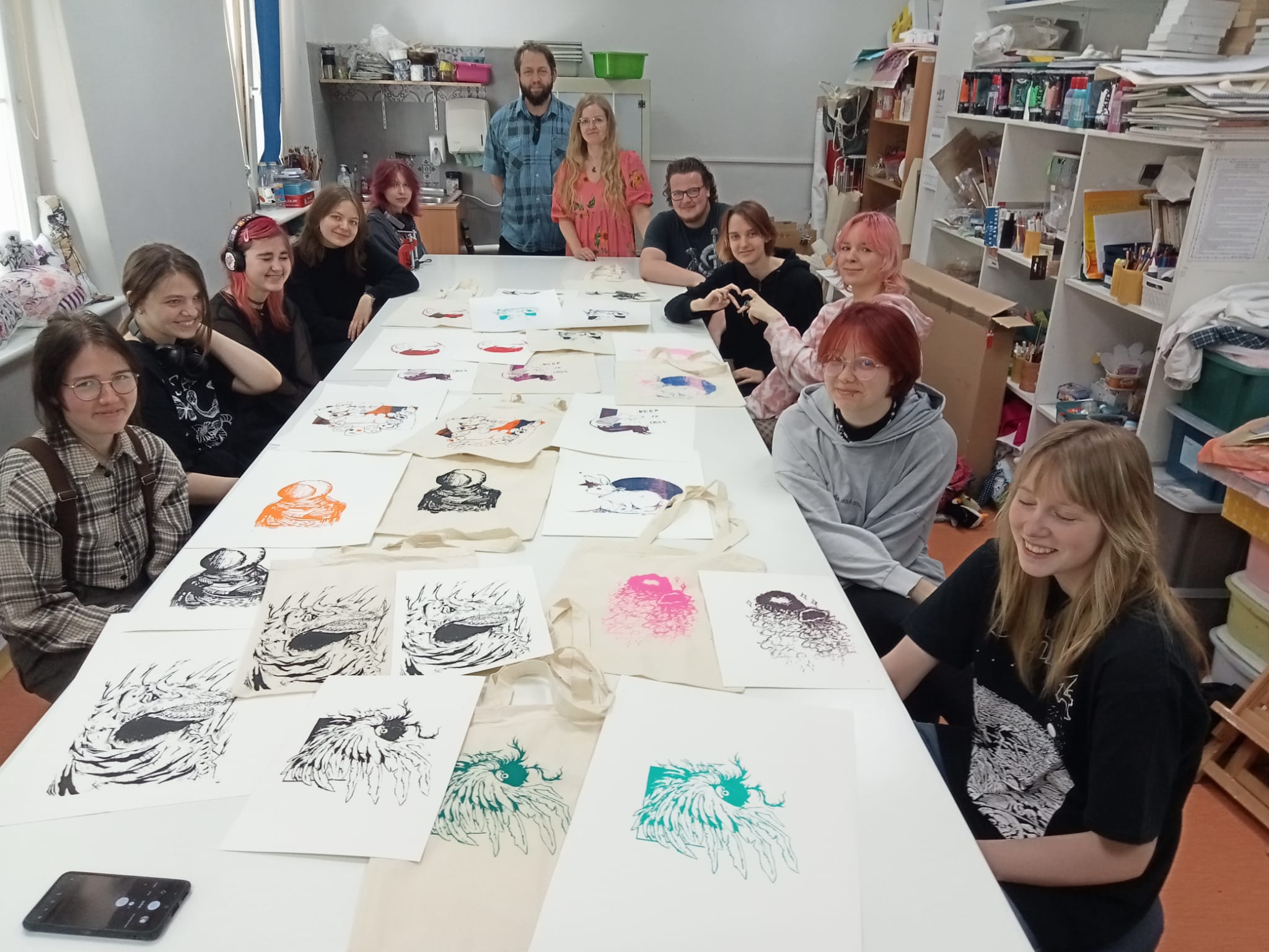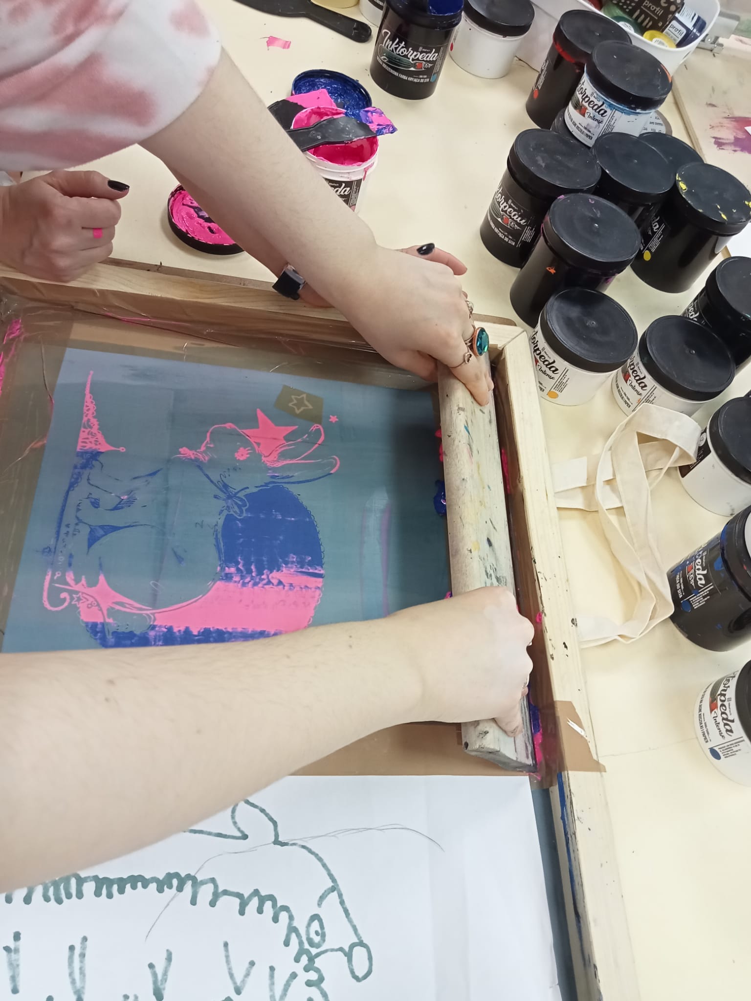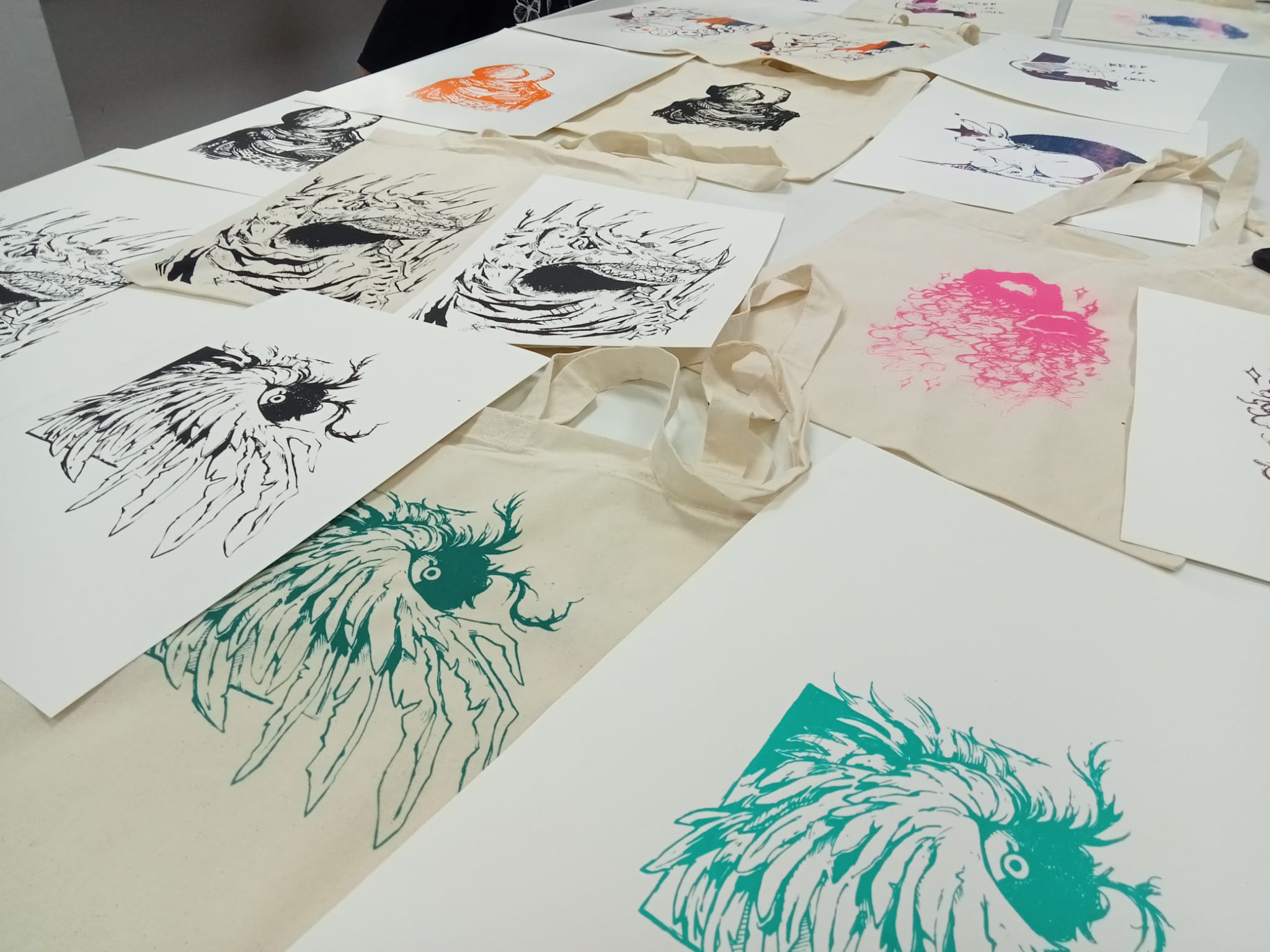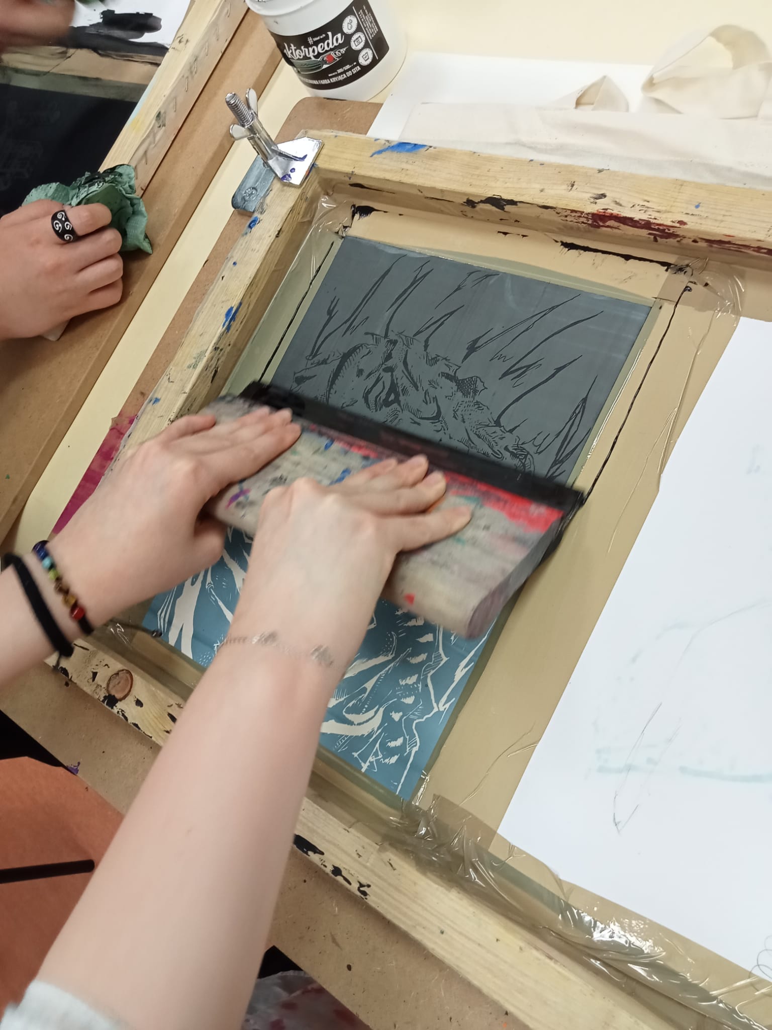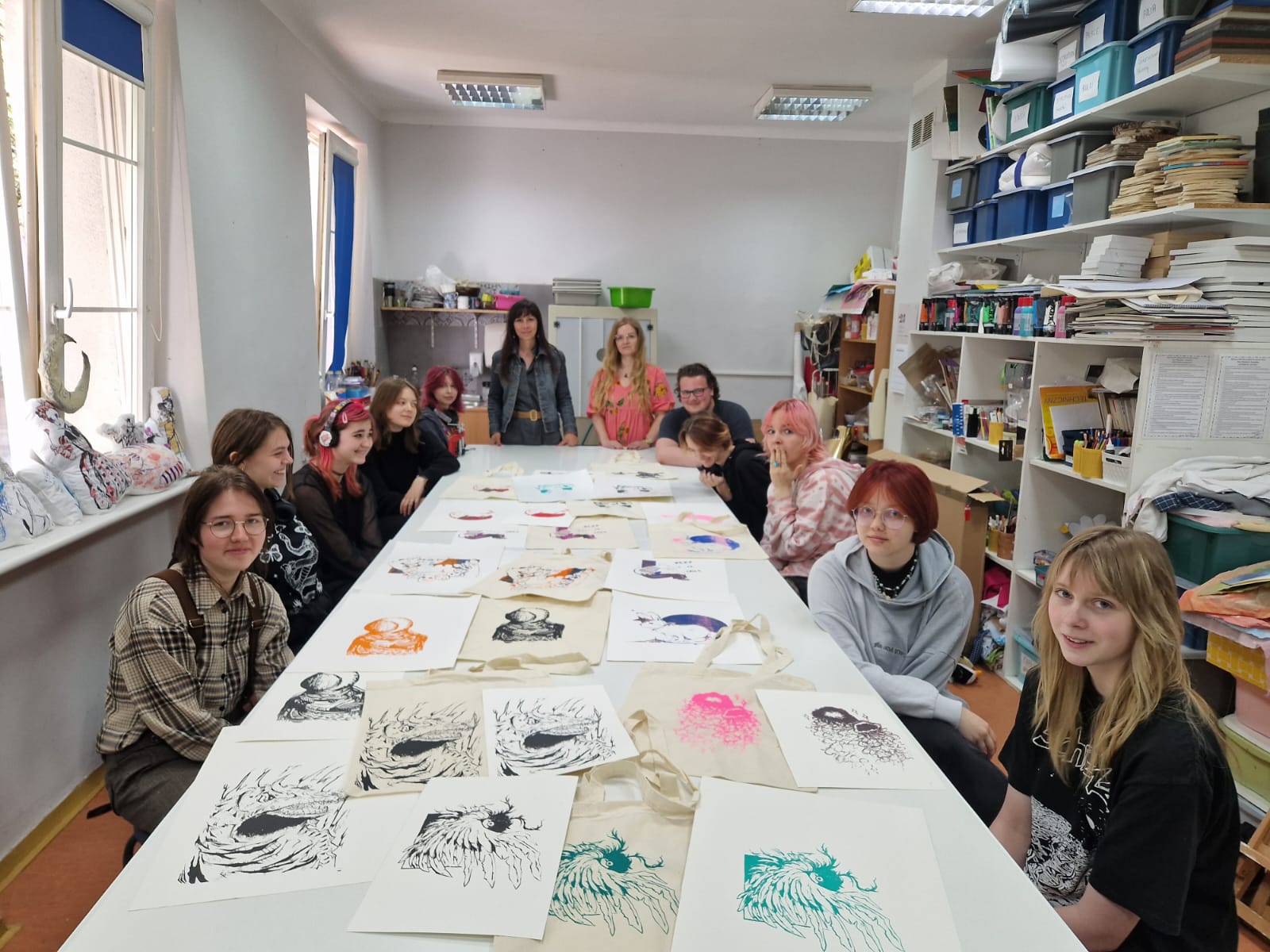 Na pierwszych zajęciach nasi uczniowie zapoznali się z technologią serigrafii i wykonali projekty, które realizowane były na drugim spotkaniu. Każdy wykonał odbitki sitodrukowe na torbach lnianych i papierze. Z warsztatów wynieśliśmy nie tylko wiedzę i nowe umiejętności, ale i torby z własnoręcznie wykonanymi odbitkami!