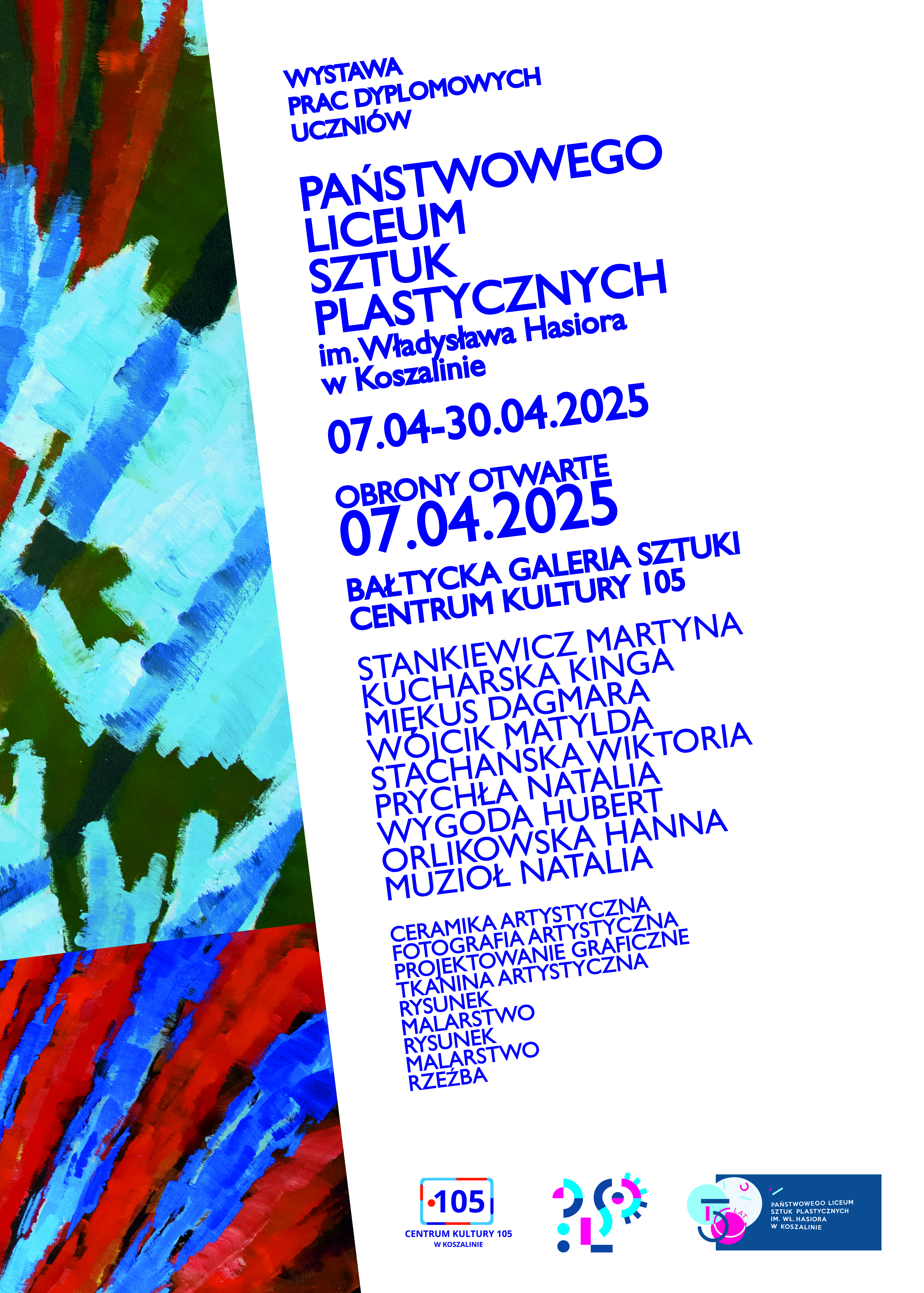 07 kwietnia odbędą się obrony prac uczniów w Galerii Bałtyckiej Sztuki (Centrum Kultury 105) przy ul. Zwycięstwa 105