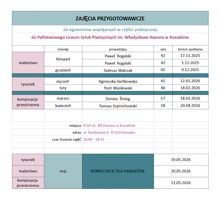 Harmonogram spotkań - zajęcia przygotowawcze do Plastyka 2025/2026Harmonogram_spotkań_-_zajęcia_przygotowawcze_do_Plastyka_-_harmonogram-3.pdf 0.06MB Zgoda na udział w zajęciach przygotowawczych i wykorzystanie wizerunku dziecka.