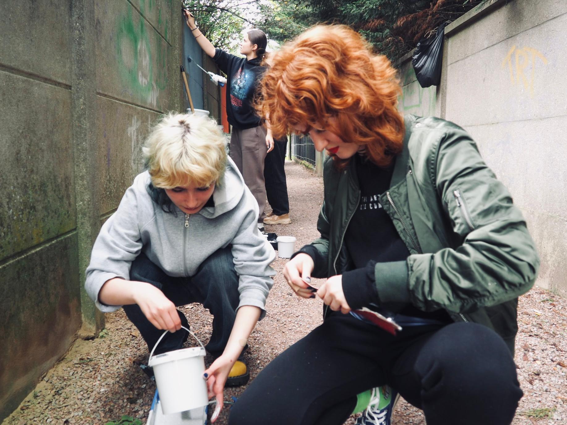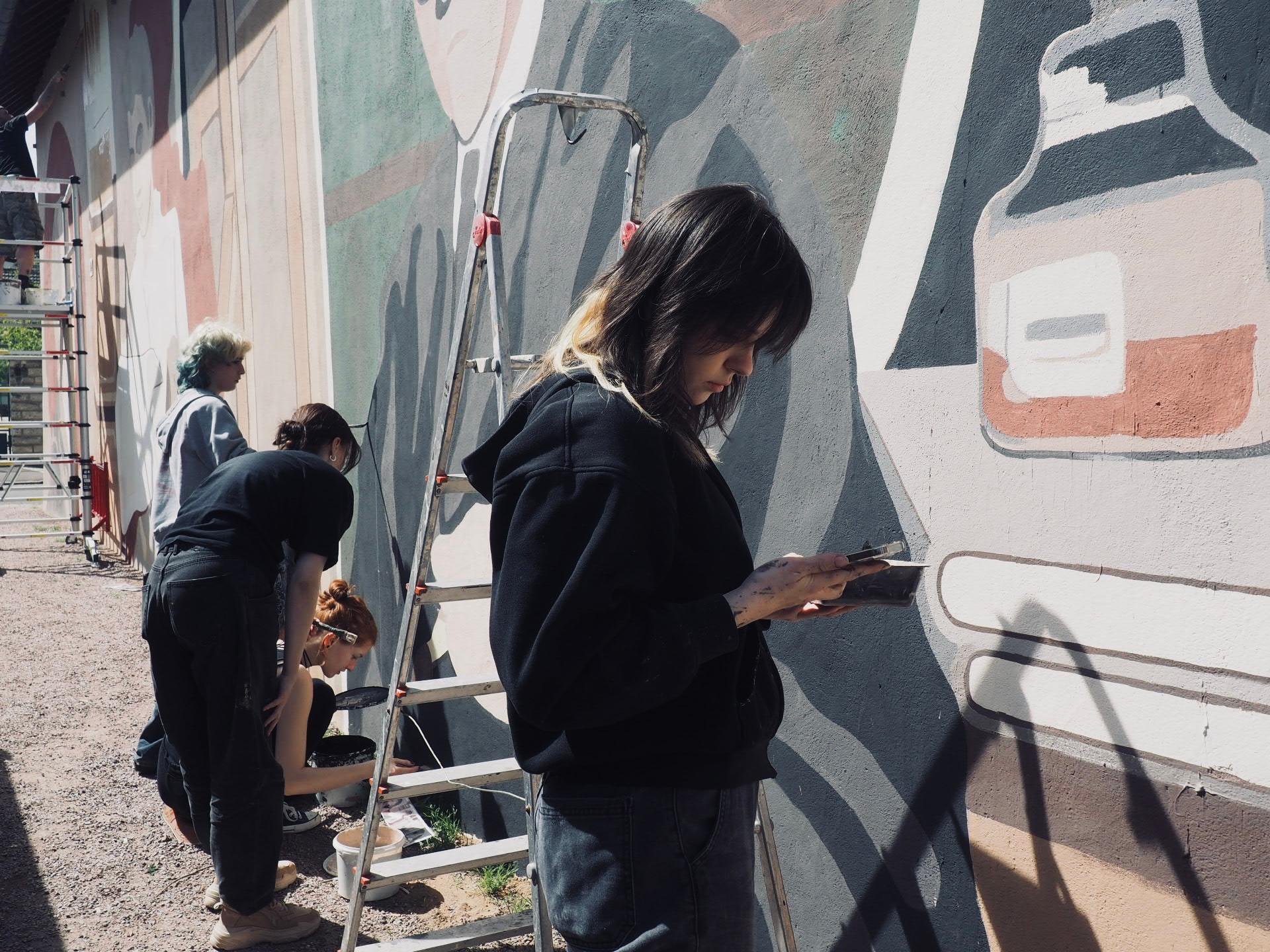 Malowidło jest realizacją konkursu przeprowadzonego w 2023 r. wspólnie przez Instytut Literacki i Państwowe Liceum Sztuk Plastycznych im. Józefa Kluzy w Krakowie. Wzięli w nim udział uczniowie PLSP. Mural malowali: Natalia Tąta (autorka zwycięskiego projektu), Dominika Kabłak-Ziembicka (autorka projektu grafiki malowanej na ogrodzeniu), Zofia Hendel, Franciszka Heliosz, Emilia Kuchta i Nina Borowicz. Uczniom pomagali pedagodzy: dyrektorka szkoły Pani Małgorzata Hołówka, oraz nauczycielki: Panie Karolina Wilcan i Paulina Ochman. Nad całością miał pieczę znany, krakowski muralista, absolwent ASP im. J. Matejki w Krakowie, Pan dr Kamil Kuzko.