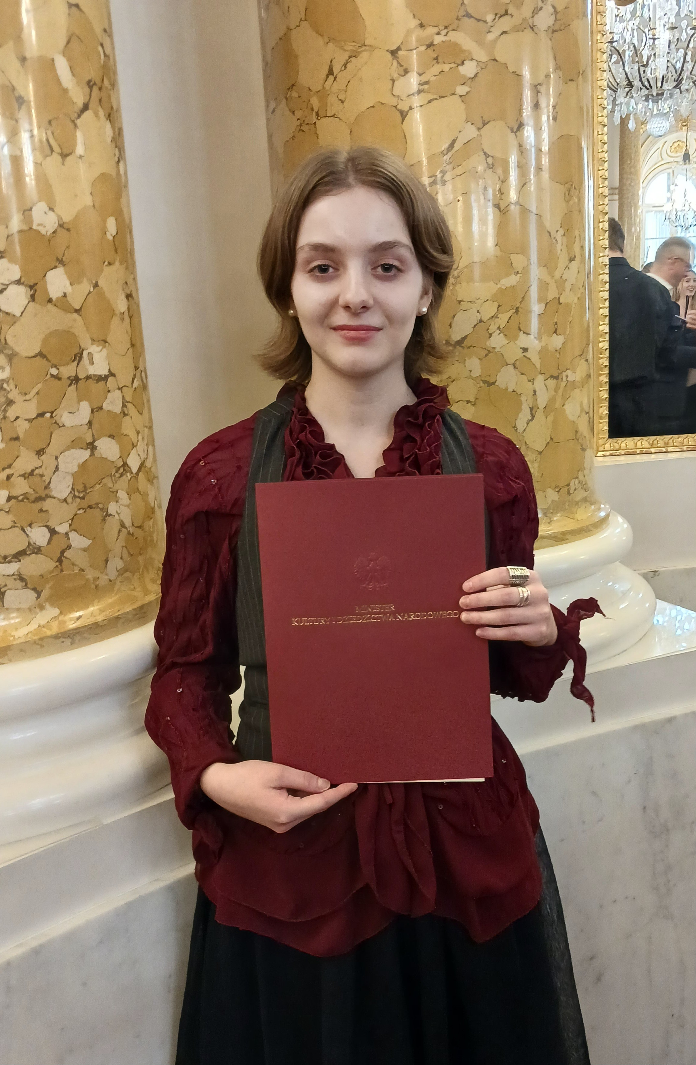 30 października br. w Sali Balowej w Zamku Królewskim w Warszawie odbyła się uroczystość wręczenia stypendiów za wybitne osiągnięcia artystyczne w roku szkolnym 2023/2024 uczennicom i uczniom szkół artystycznych.
