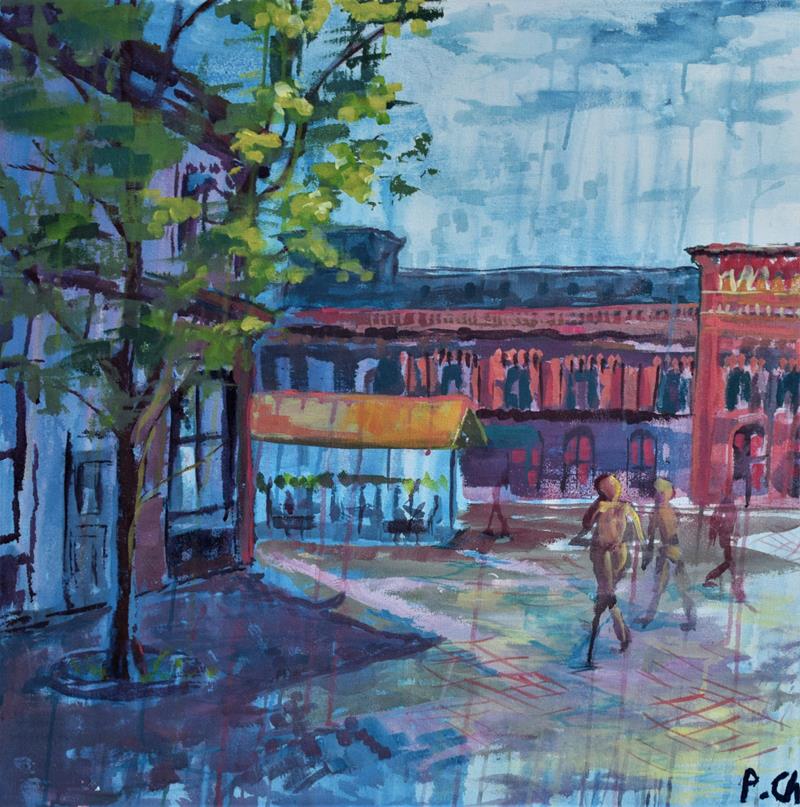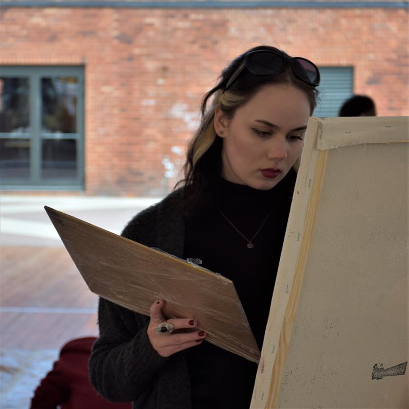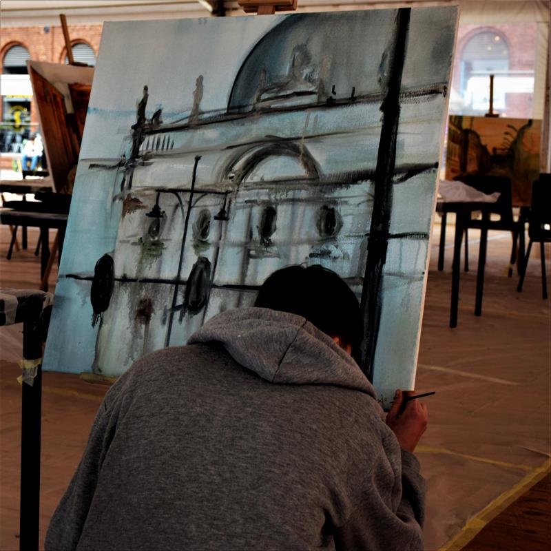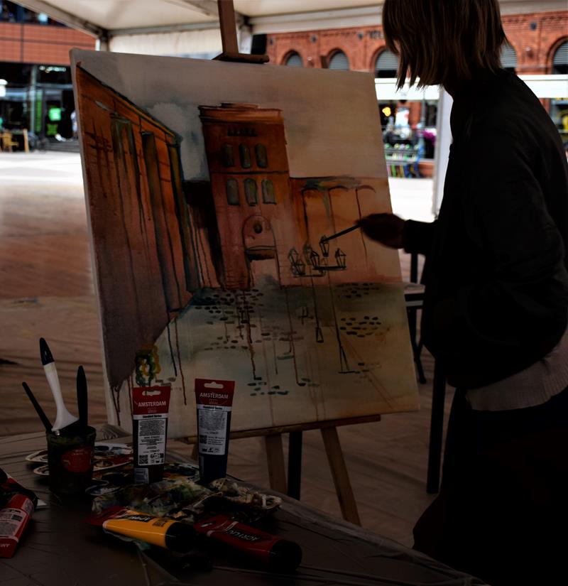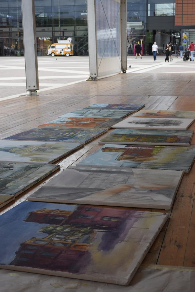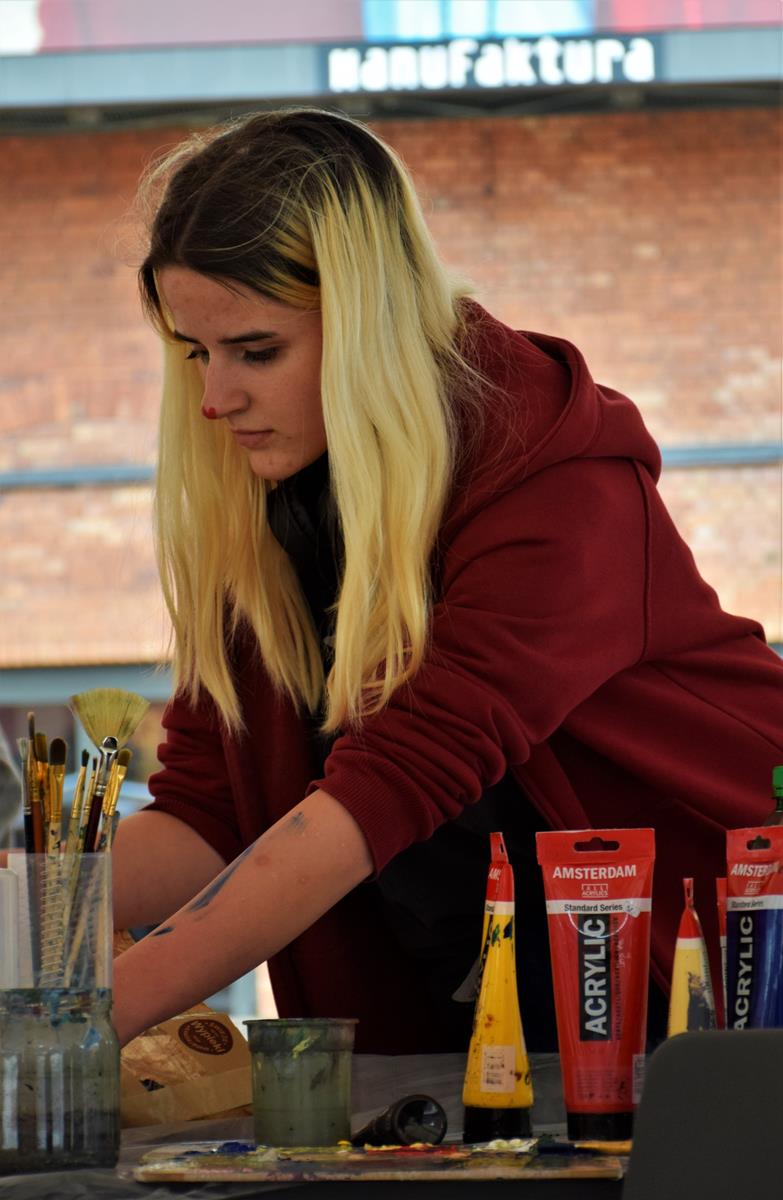W specjalnym namiocie eventowym na Rynku Manufaktury uczniowie klasy IIIa PLSP, pod opieką p. Anny Czekay i p. Tomasza Ciechanowskiego, malowali obrazy, których tematem była architektura Łodzi.