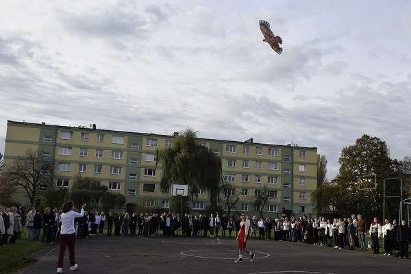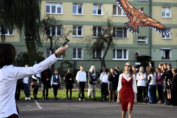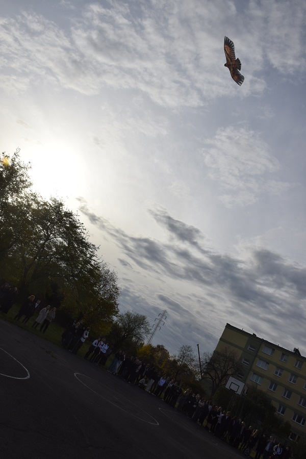 Zwieńczeniem obchodów 11 Listopada był performance. Na boisku szkolnym został puszczony latawiec jako symbol swobody, nieskrępowania i wznoszenia się ku ideałom. Kiedyś naszym marzeniem stała się wolność, dzisiaj – gdy możemy z niej korzystać – powinniśmy rozwijać skrzydła niczym orzeł, królewski ptak, stale się doskonalić i kształcić.