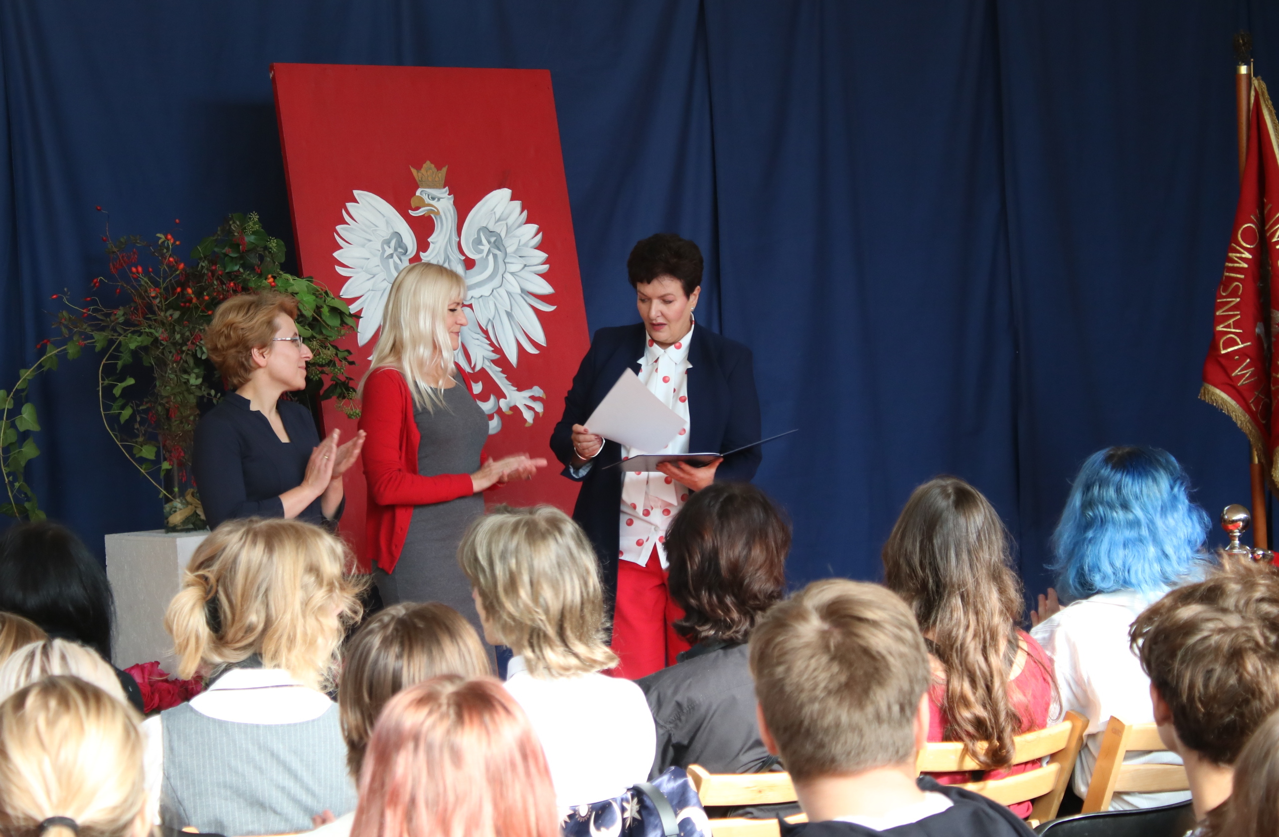 Pani Dyrektor podkreśliła istotę edukacji w życiu młodzieży oraz rolę nauczycieli, którzy są odpowiedzialni za formowanie się postaw i światopoglądów uczniów, którzy wspierają ich w rozwijaniu potencjału i umiejętności. Przyznała również nagrody pedagogom i pracownikom szkoły, którzy wyróżnili się swoją pracą.