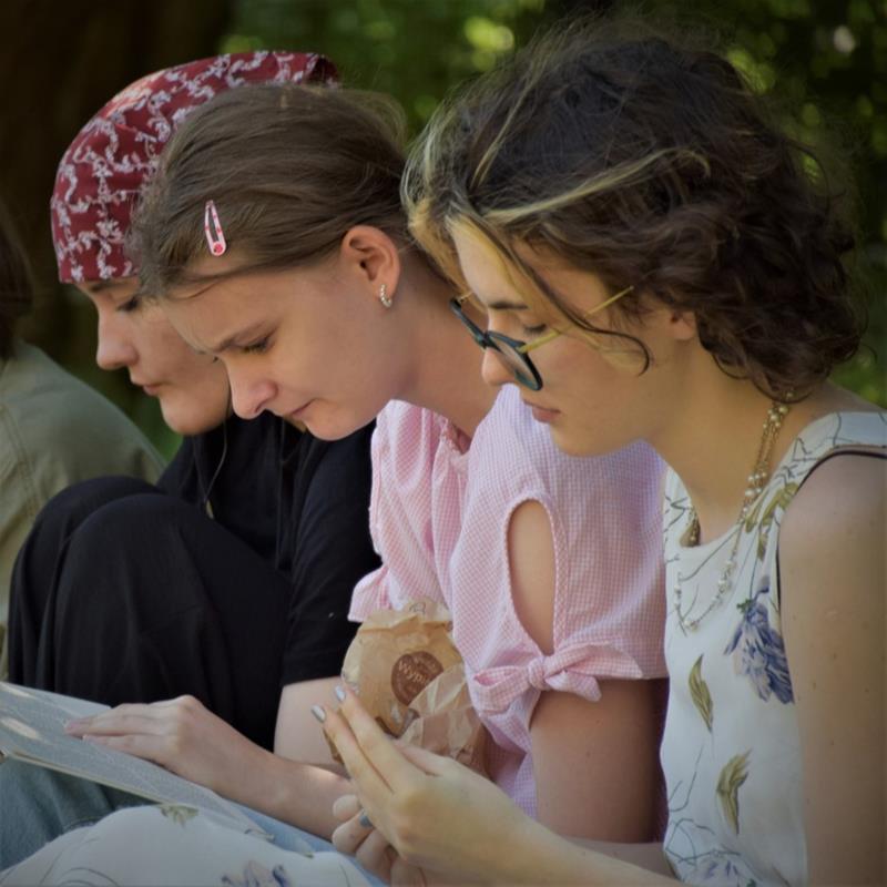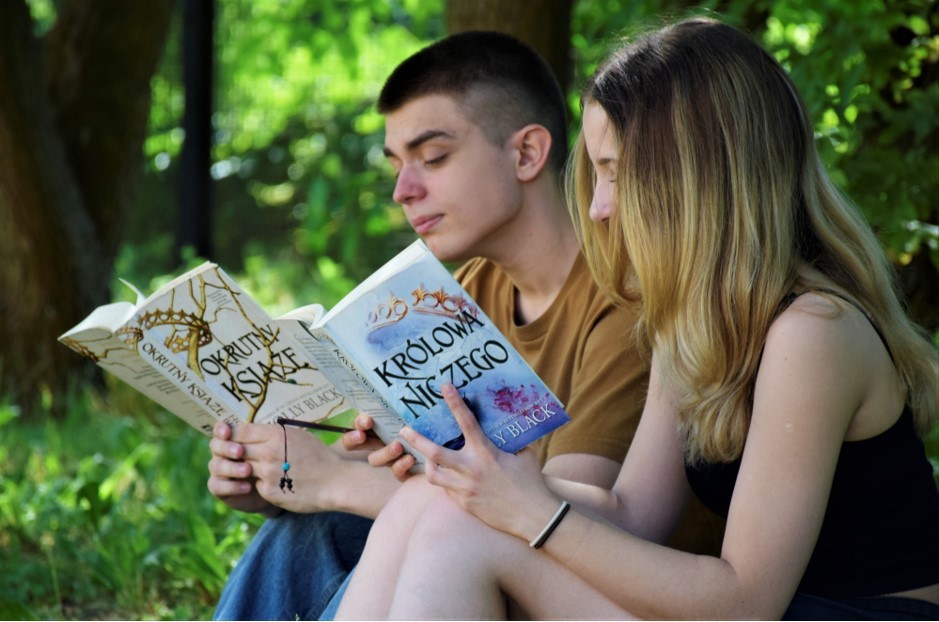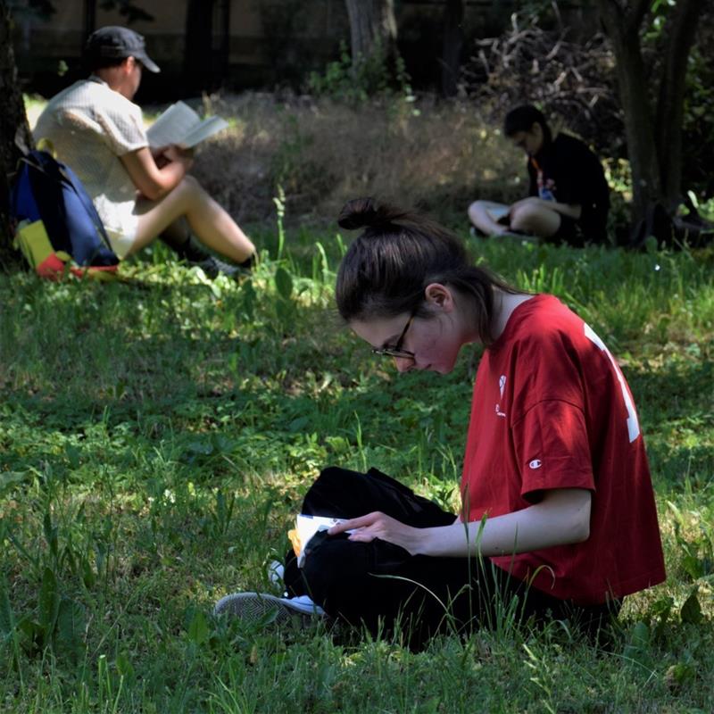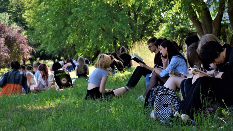 Po zrobieniu wspólnego zdjęcia wszyscy rozeszli się po zacienionych zakątkach, gdzie przyjęli wygodne pozycje i zagłębili w lekturze. Imponująca była różnorodność literatury, jaką uczniowie czytali. Jedni kontynuowali czytanie rozpoczętych wcześniej powieści, inni delektowali się poezją, przeglądali albumy, a nawet podręczniki do języków obcych.