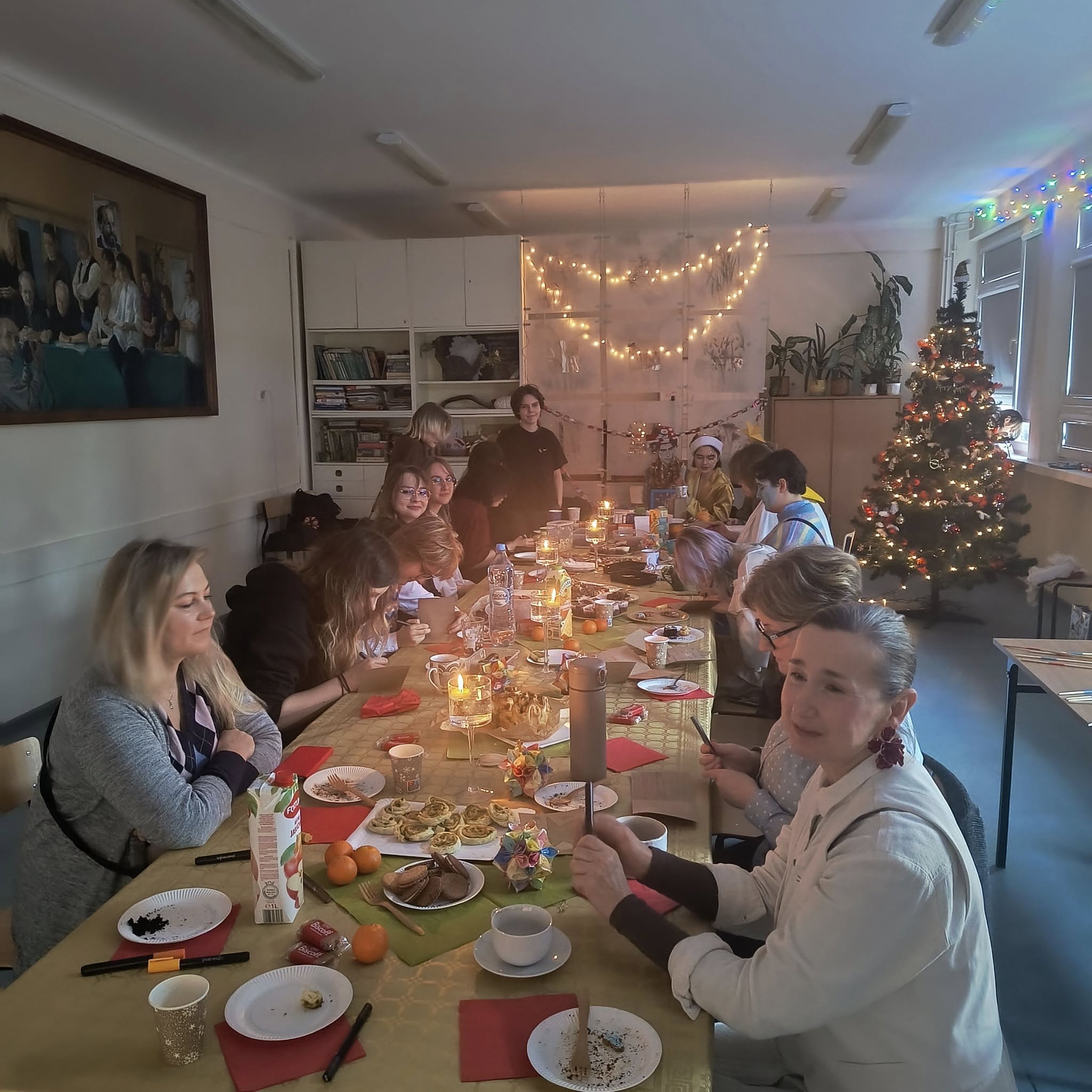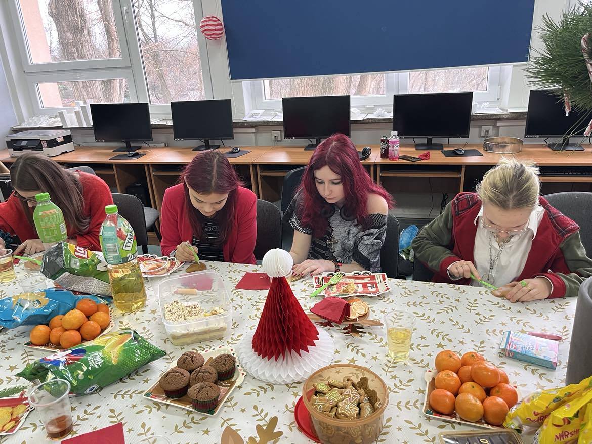 Po uroczystości wszyscy udali się do swoich sal, aby wspólnie spędzić wigilie klasowe, rozdać upominki, cieszyć się swoim towarzystwem i poczuć świąteczną atmosferę. Czas uczniom oraz nauczycielom upłynął w przyjemnej i spokojnej atmosferze, dając zapowiedź zbliżającego się szybkimi krokami Bożego Narodzenia.