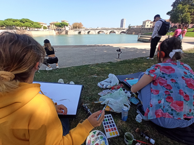 Most Augusta (Tyberiusza), liczący sobie ponad 2000 lat, atrakcyjny „kąsek” dla każdego historyka sztuki, także nie umknął naszej uwadze. Ten starożytny rzymski most na rzece Marecchia, wykonany w istryjskim wapieniu i bogato zdobiony, bardzo nas zachwycił. Wielu uczniów zdecydowało się uwiecznić go na płótnie, co skutkowało powstaniem przepięknych i „wrażliwych” pejzaży.