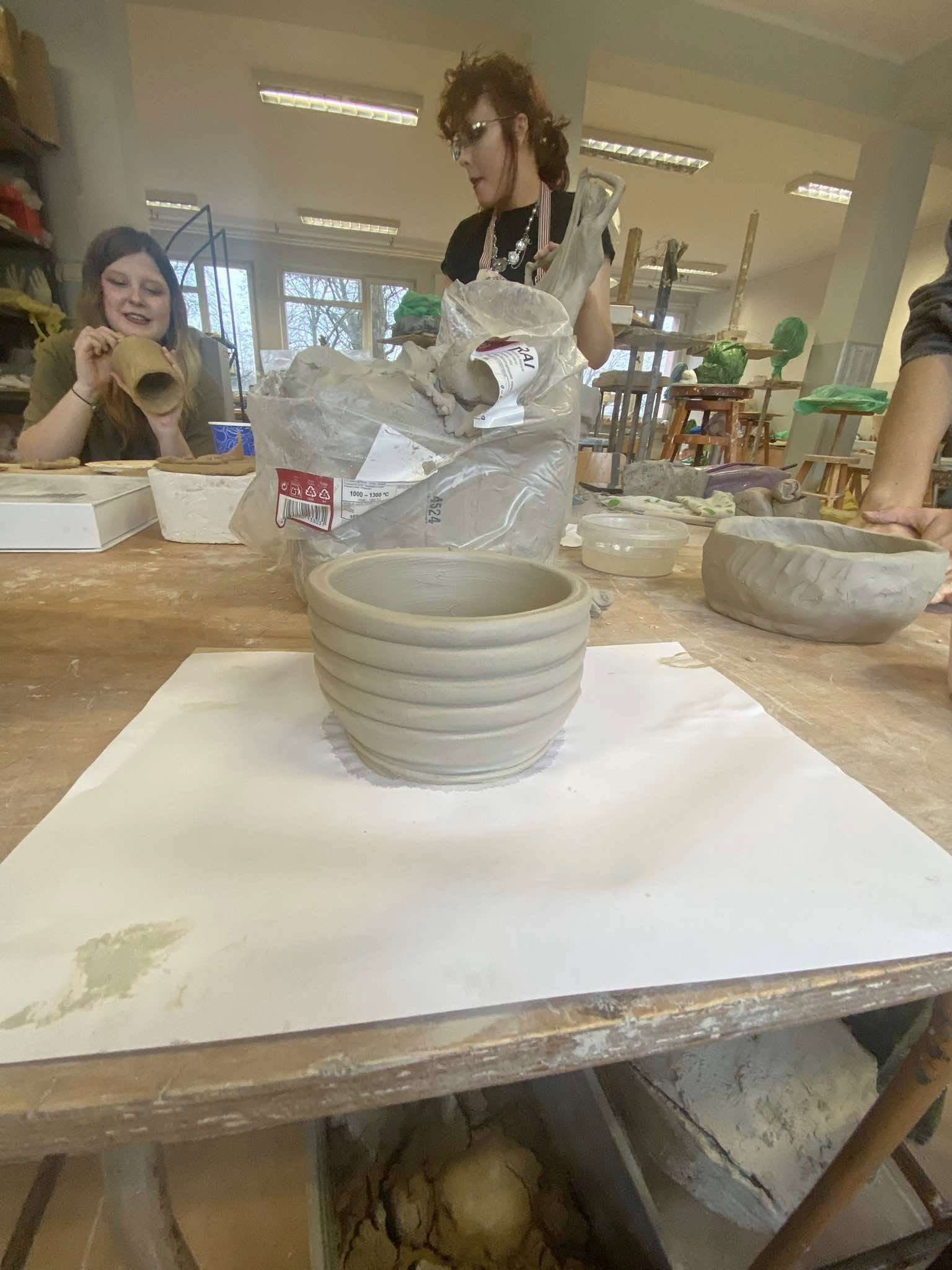 W pracowni rzeźby w ostatnim czasie dużym zainteresowaniem cieszy się koło garncarskie. Toczenie na kole jest trudne i dość mozolne, więc wymaga zaangażowania i cierpliwości. Z punktu widzenia pedagoga to bardzo dobry znak, że wśród młodzieży są osoby, które pragną sprostać temu wyzwaniu – i zamierzają nauczyć się tej techniki. Ćwiczą po to, aby osiągnąć dalekosiężny cel.