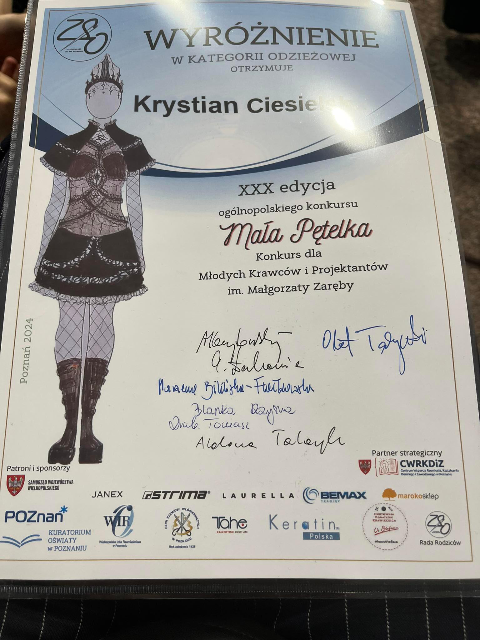 11 kwietnia w Zespole Szkół Odzieżowych im Wł. Reymonta w Poznaniu odbyła się okrągła 30. gala finałowa Konkursu „Mała Pętelka”. Reprezentacja naszej szkoły w osobie Krystiana Ciesielskiego zdobyła tam zacne wyróżnienie!