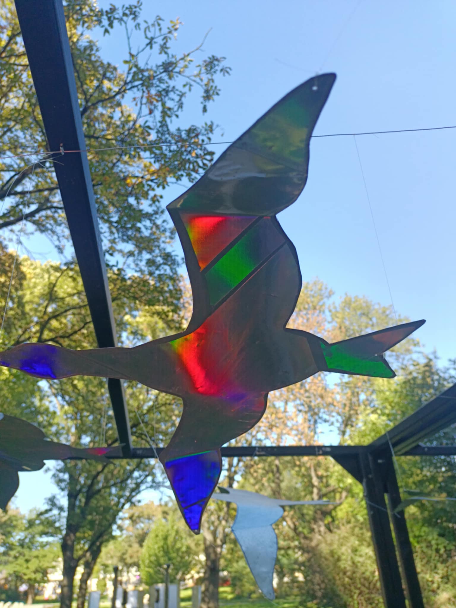 Instalację realizowała klasa IVa (druga grupa). Do jej przygotowania wykorzystała elementy stalowe i drewniane, zawieszone w przestrzeni. Same ptaki okleiła folią fluorescencyjną.