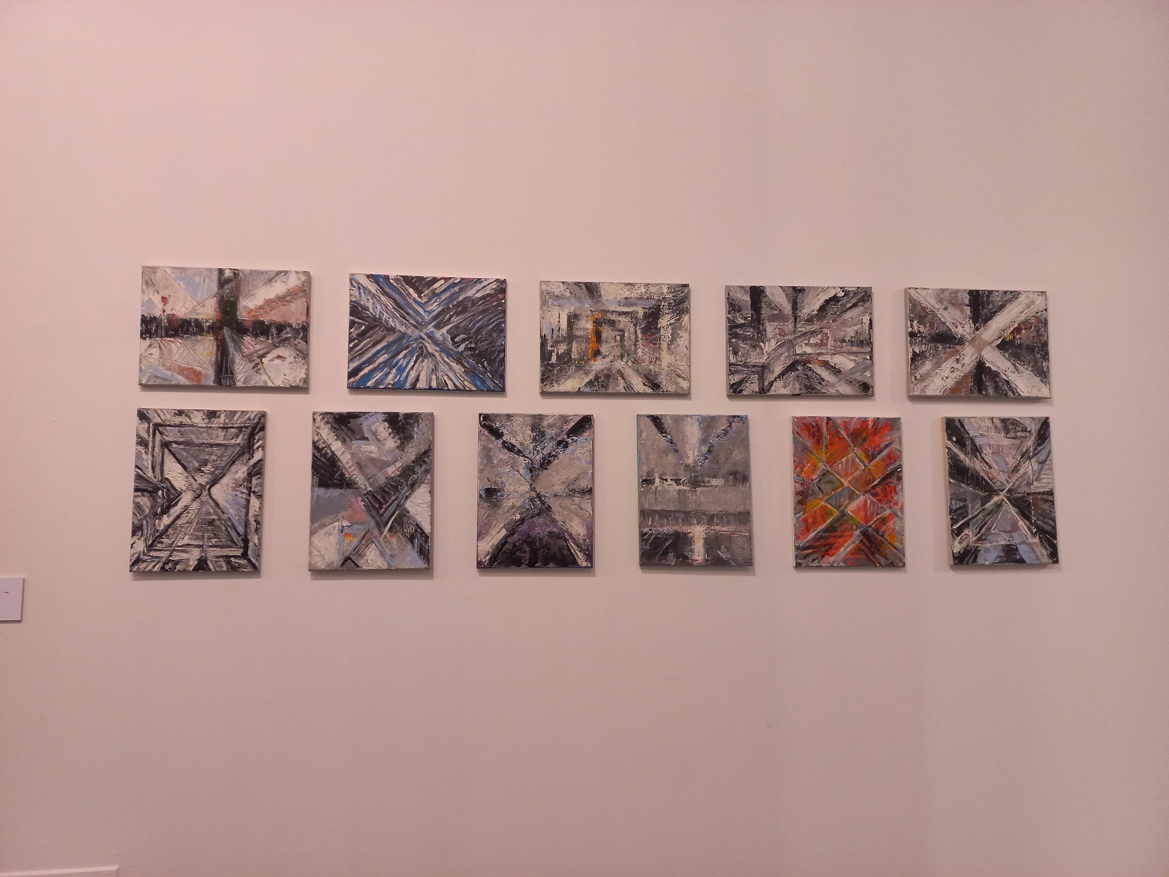 Chętnie opowiadał o obrazach, inspirowanych łowickimi pasiakami, czy bardziej uniwersalnymi symbolami, takimi jak słońce, księżyc czy spirala. W tle puszczona była muzyka autorstwa artysty.