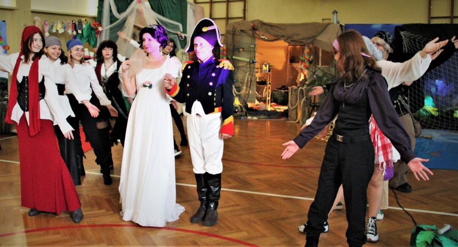 Okazało się bowiem, że pierwsza żona Napoleona, cesarzowa Francuzów oraz królowa Włoch, urodziła się na Martynice. Zresztą odwiedzili nas we „własnej osobie” Bonaparte oraz Józefina (w ich role wcielili się p. Magdalena Modrzejewska oraz p. Jacek Vogel), otoczeni kordonem piratów (uczniowie klasy Ia PLSP).