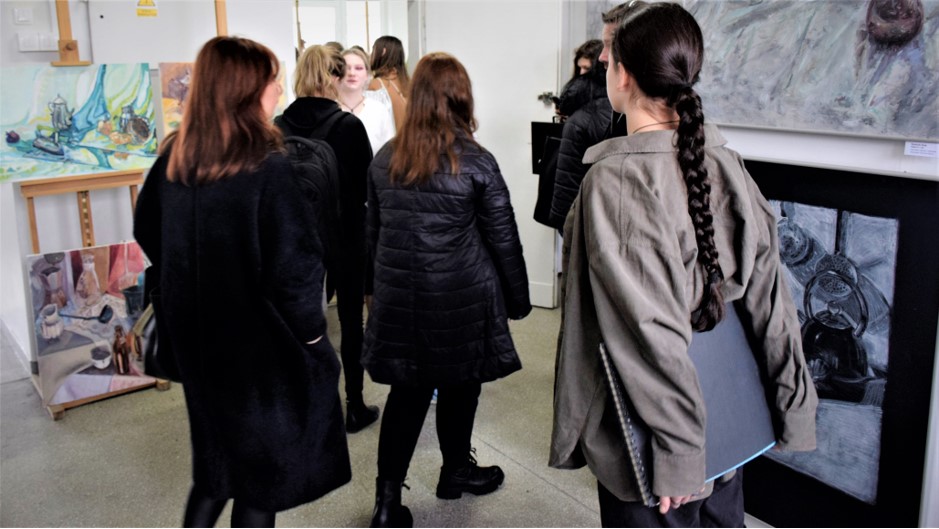 W czasie Drzwi Otwartych zaprosiliśmy do szkoły gości z zewnątrz. Odwiedzały nas grupy uczniów zainteresowanych edukacją w Państwowym Liceum Sztuk Plastycznych w Łodzi. Ósmoklasiści mogli wziąć udział w egzaminie próbnym, by sprawdzić swoje umiejętności czy przygotowanie artystyczne, pokazać nauczycielom wykonane przez siebie prace i skorzystać z ich wskazówek, a ponadto zwiedzić szkolne pracownie.