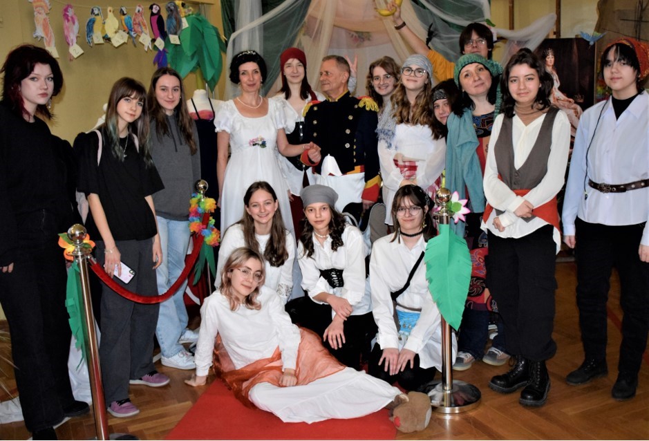 Dzięki uczniom lepiej poznaliśmy geografię Martyniki (prezentacja Zuzanny Irchy), wysłuchaliśmy szant, śpiewanych „morskich opowieści” (wykonanie Maksymiliana Gryndela, Mariki Kuc i Antoniny Uzdrowskiej), a także odwiedziliśmy domek rybaka oraz salon Józefiny.