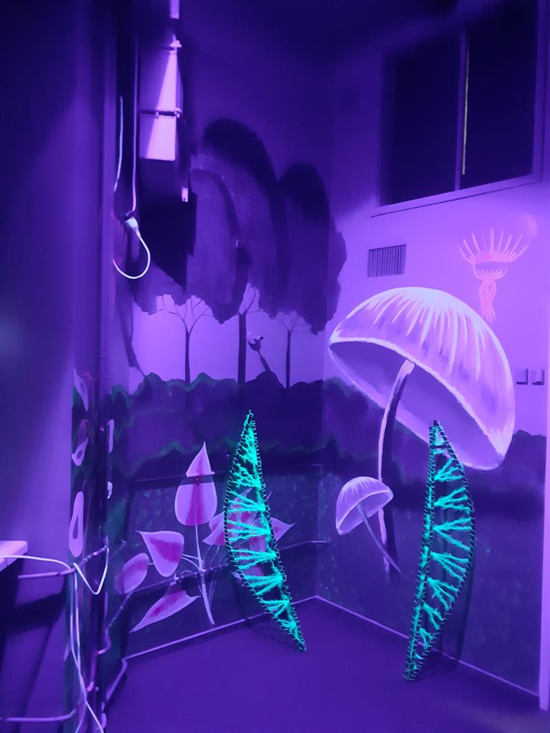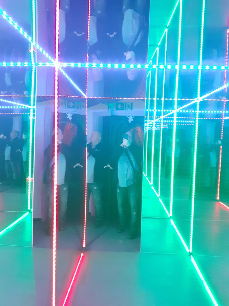 Krocząc za przewodnikiem długim korytarzem, wchodziliśmy do kolejnych pomieszczeń, w których można było obejrzeć kompozycje wizualne stworzone przy użyciu światła. Zobaczyliśmy m.in. pokój nazwany „dżunglą” – tam, opuszczając znaną nam rzeczywistość, mogliśmy przenieść się w gęsty las, który po zmroku zamieniał się w ultrafioletowy raj.