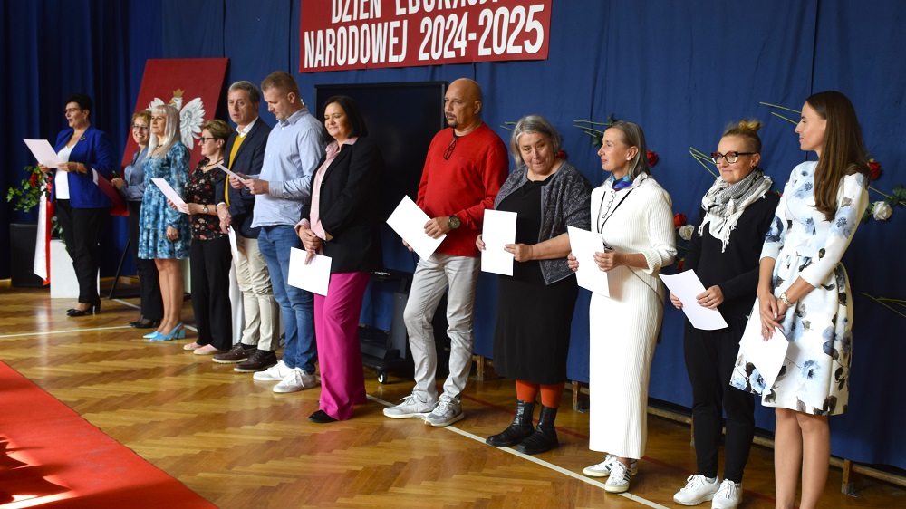 Gratulujemy także nauczycielom i pracownikom niepedagogicznym, którzy otrzymali nagrodę Dyrektora szkoły. 11 października wręczała ją p. Dorota Kłodzińska – wspierana przez p. Małgorzatę Pilżys oraz p. Jolantę Mastalerz. Dyrekcja doceniła osoby, które, oprócz realizowania obowiązków dydaktycznych, wychowawczych i opiekuńczych, podejmowały się dodatkowych inicjatyw i działań na rzecz społeczności szkolnej.