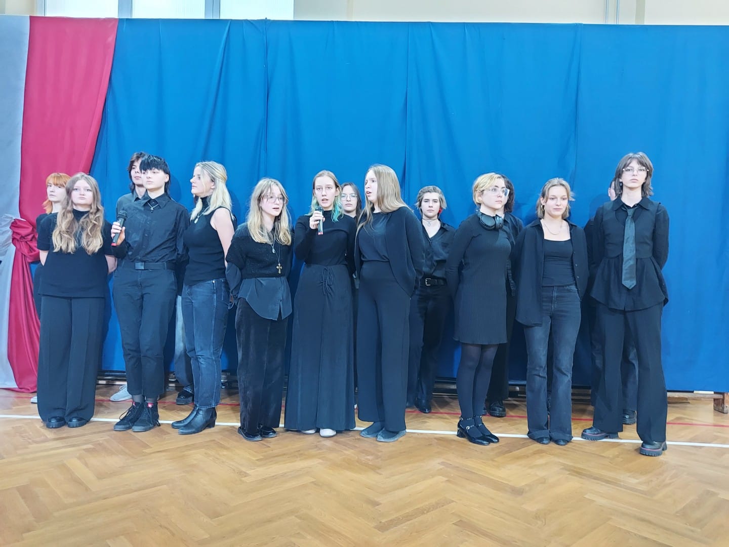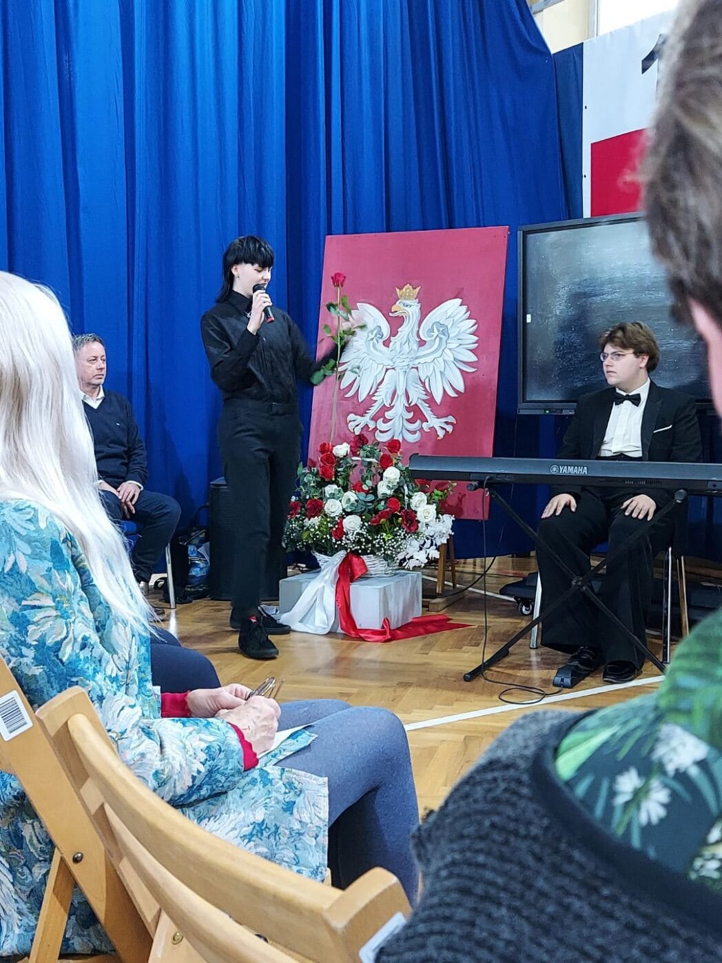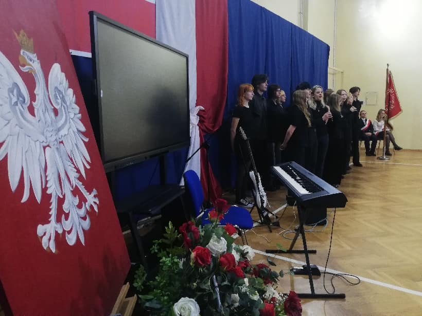 Multimedialną opowieść o rodzinie Tyrowiczów przeplatały wiersze i piosenki, interpretowane przez uczniów naszej szkoły, pięknie recytujących, śpiewających i grających na instrumentach. Spotkanie zakończyło instrumentalne wykonanie autorskiego utworu ucznia klasy trzeciej: „Wschód słońca”. Patriotyczną pieśń My, Pierwsza Brygada wykonał nasz szkolny chór, składający się zarówno z maturzystów, jak i uczniów pierwszych klas.