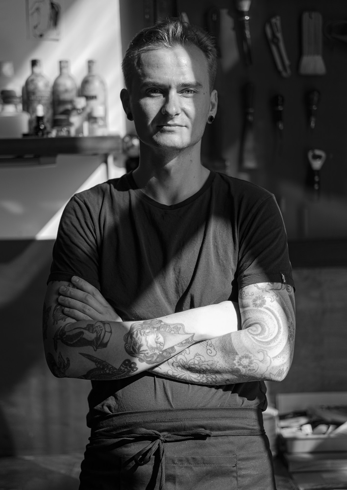 Artysta urodził się w 1988 roku w Koluszkach. Jest absolwentem Zespołu Szkół Plastycznych im. Tadeusza Makowskiego w Łodzi. Uzyskał tytuł licencjata sztuki na Wydziale Technologii Materiałowych i Wzornictwa Tekstyliów w Instytucie Architektury Tekstyliów - na kierunku wzornictwo Politechniki Łódzkiej. Jest ponadto absolwentem Akademii Sztuk Pięknych im. Władysława Strzemińskiego w Łodzi na Wydziale Grafiki i Malarstwa (na kierunku grafika). Dyplom uzyskał w 2014 roku w Pracowni Technik Wklęsłodrukowych prof. Krzysztofa Wawrzyniaka.