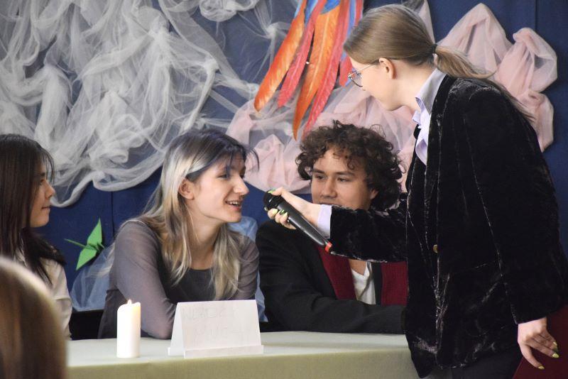 Film wywołał uśmiech na twarzach oglądających. Podobnie familiada, którą prowadziła Zuzanna Ircha (kl. IVa). Uczestnicy dwóch drużyn („Władcy Much” – liderem był Mikołaj Haręża; „Stokrotki” – liderką była Anita Bocheńska) zgłaszali się do odpowiedzi na zadane pytanie. Gracz, który zrobił to najszybciej, odpowiadał jako pierwszy. Pytania dotyczyły nauczycieli i historii sztuki.