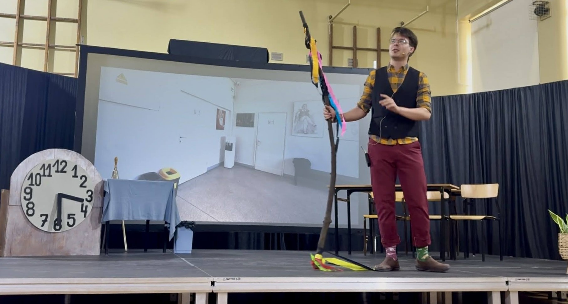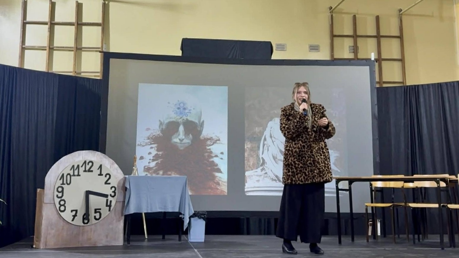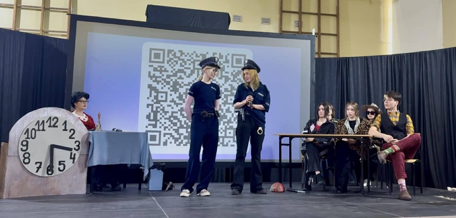 Punktem kulminacyjnym było przedstawienie przygotowane przez Szkolne Koło Teatralne. Uczniowie i uczennice sparodiowali nauczycieli – z p. Dorotą Kłodzińską na czele. Ci przeglądali się w „krzywym zwierciadle”, śmiejąc się do rozpuku. W akcję wpisano kryminalną intrygę, której nie powstydziłaby się sama Agatha Christie, królowa powieści detektywistycznej. Zagadkę, oczywiście, rozwiązywała publiczność, która typowała winnego zbrodni.