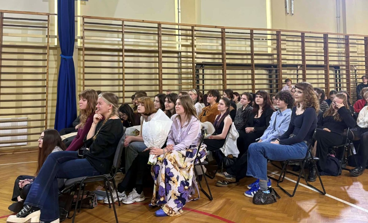 Komediowe widowisko rozbawiło wszystkich i nastroiło pozytywnie na resztę dnia. Było sentymentalnie i emocjonalnie. Klasy piąte podziękowały nauczycielom za ich kilkuletnią pracę, w tym za starania w przygotowaniu do egzaminów dyplomowych i maturalnych – a te odbędą się już niebawem.