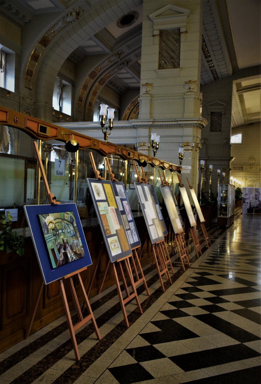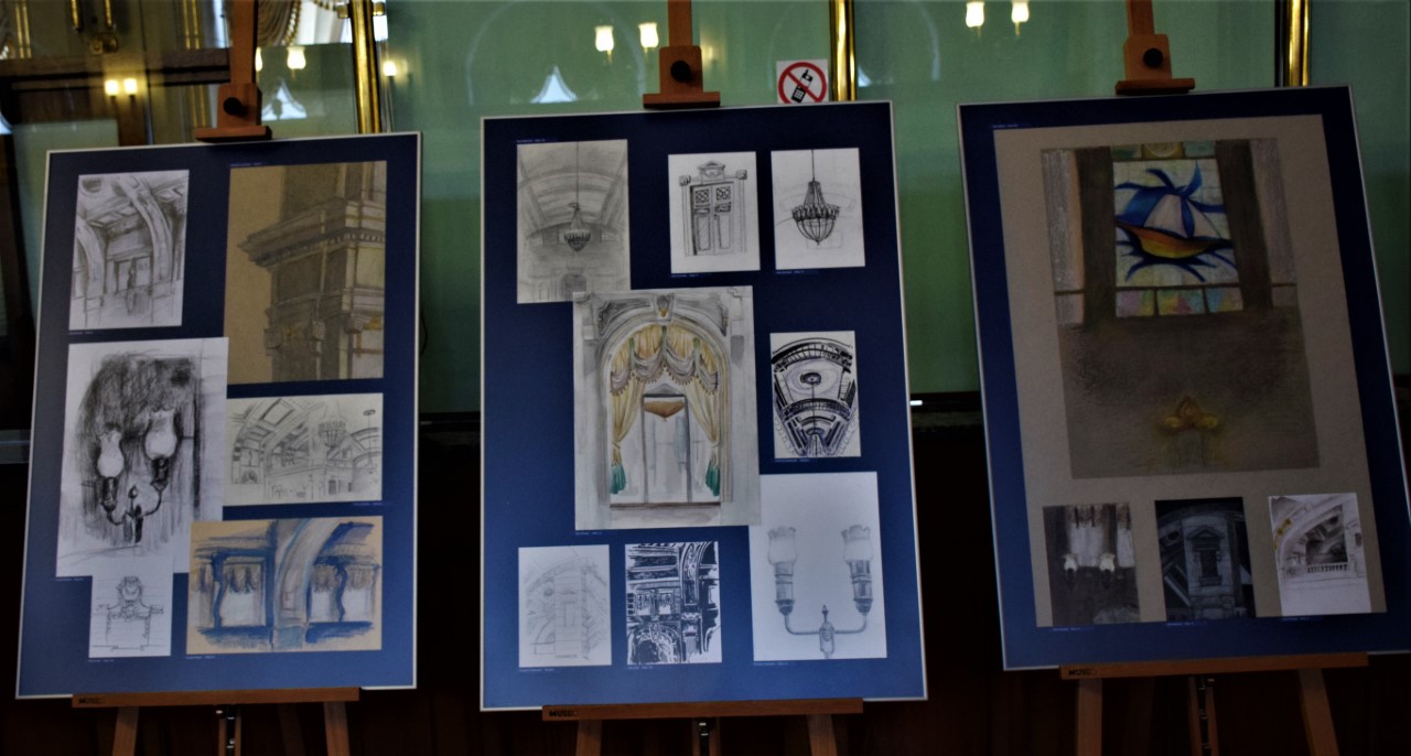Autorami prac są uczniowie klasy Ic oraz klasy IVa – z pracowni rysunku i malarstwa prowadzonych przez p. Grażynę Olczyk, p. Halinę Chrapowicką-Ołubek oraz p. Piotra Izydorczyka. Oglądając prezentowane szkice, rysunki i realizacje malarskie młodych adeptów sztuk plastycznych oraz uczniów klasy czwartej, wkrótce już absolwentów szkoły, możemy podziwiać ich wizje artystyczne – dzieła, które powstały w secesyjnych wnętrzach banku, przestrzeniach pełnych detali architektonicznych. To one stały się głównym tematem prezentowanych prac. Opiekę artystyczną nad plenerem i wystawą sprawował p. Tomasz Ciechanowski.