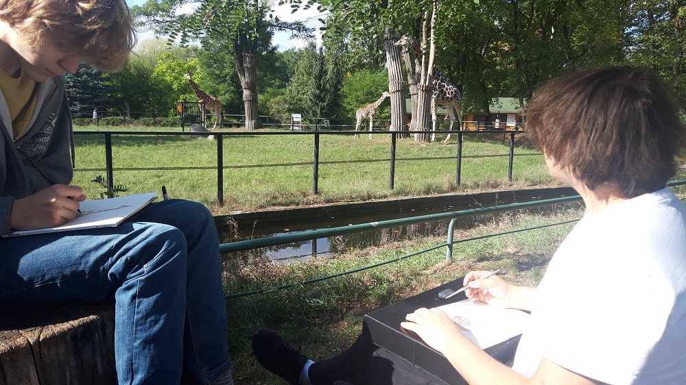 Uczniowie Państwowego Liceum Sztuk Plastycznych odwiedzili już po raz drugi Orientarium ZOO Łódź – była to kolejna przygoda i nowe wyzwania artystyczne, swoista „rozmowa” ze zwierzętami, w ich domach i na wybiegach, które są lekko zbliżone do warunków naturalnych. To, co najbardziej fascynuje w ogrodzie zoologicznym, to możliwość obejrzenia zwierząt z całego świata w jednym miejscu. Dla artysty to doskonała okazja, by obserwować ich zachowania, ruchy, kształty (proporcje), kolory i gesty.