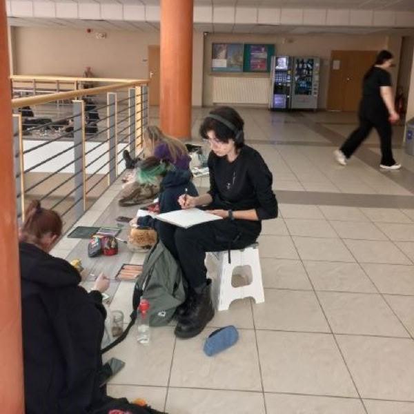 Jak co roku uczniowie naszej szkoły uczestniczyli w plenerze na Wydziale Zarządzania Uniwersytetu Łódzkiego. Pogoda tym razem nie dopisała, więc młodzi artyści musieli rozlokować się wewnątrz budynku. Mimo to atmosfera była gorąca.