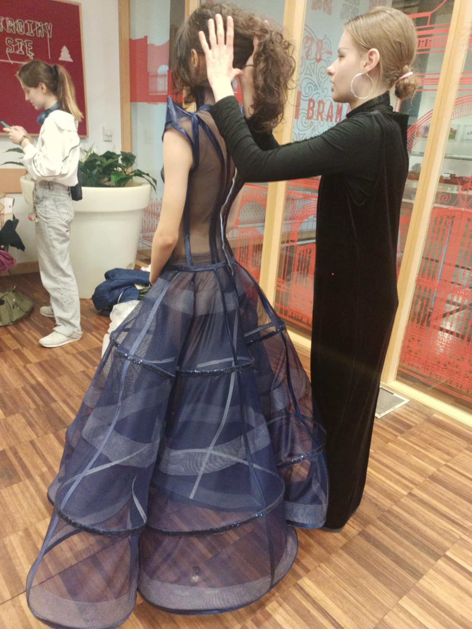 Suknie wieczorowe, zaprezentowane w drugiej części pokazu, pochodziły z kolekcji inspirowanej twórczością Christiana Diora. Ich autorką jest Amelia Kwiatkowska - uczennica klasy czwartej.