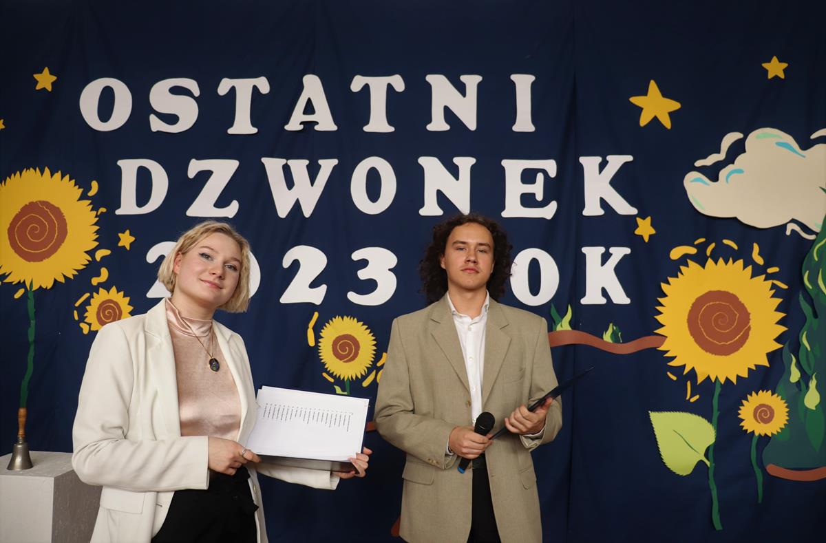 Zabrzmiał także „ostatni dzwonek” – zadbała o to p. Dorota Kłodzińska, dyrektor Państwowego Liceum Sztuk Plastycznych w Łodzi. Oficjalnie zamknął on czas nauki w „Łódzkim Plastyku”. A dzięki poczęstunkowi, zorganizowanemu przez klasę IVb PLSP, ten „koniec” okazał się ponadto słodki i smaczny. Dodatkowo młodsi koledzy wręczyli IVa LP przygotowane dla niej zdjęcia klasowe i laurki.