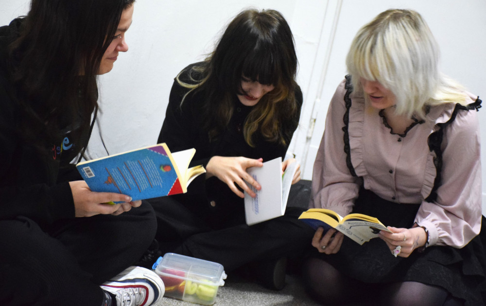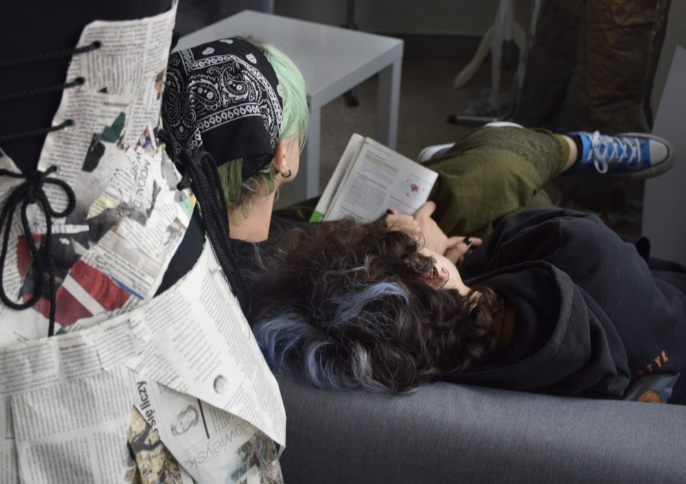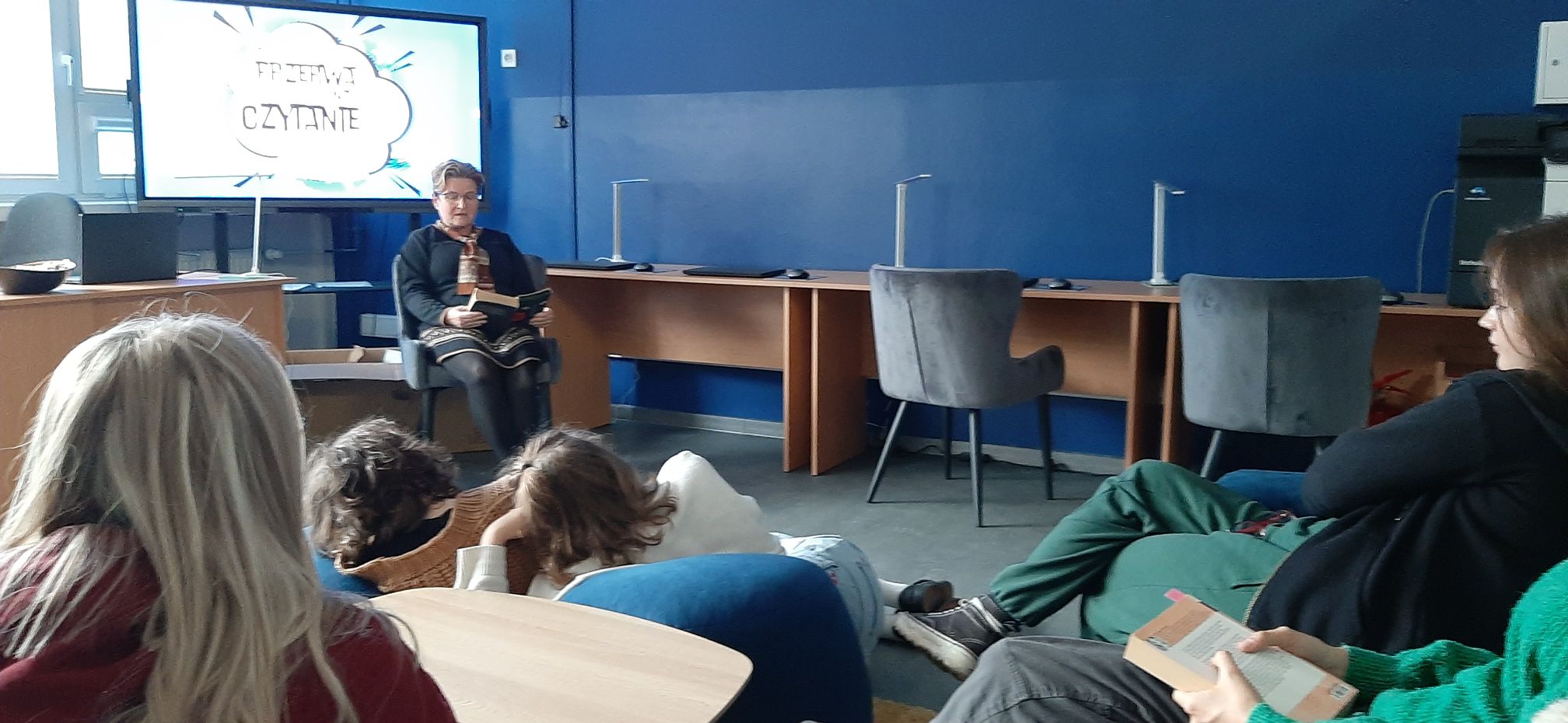 W bibliotece na długiej przerwie zorganizowany został kącik głośnego czytania, gdzie grupa uczniów i nauczycieli mogła posłuchać "Złego" Leopolda Tyrmanda.