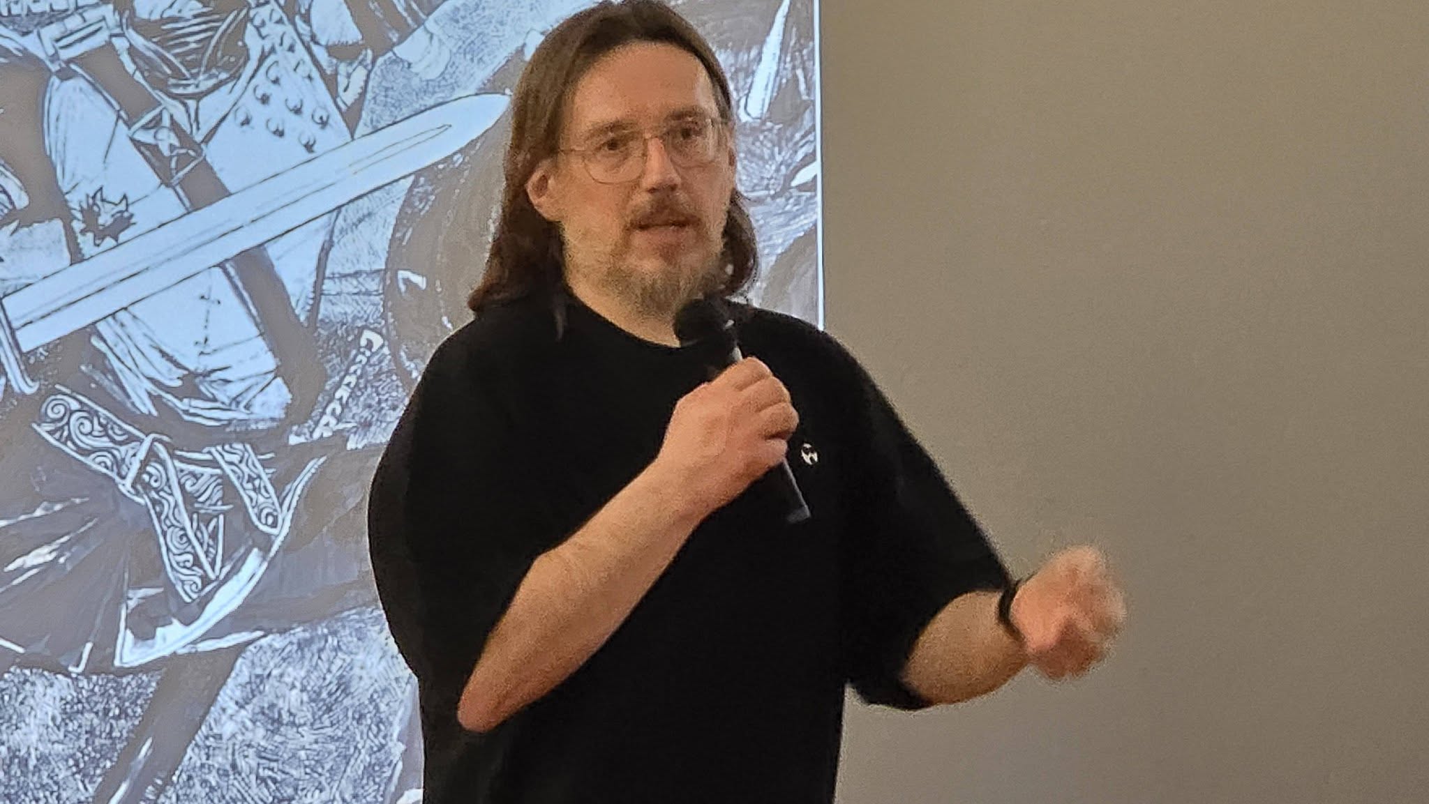 Historią, pełną humoru i anegdot z życia, wzbudził zainteresowanie uczniów i uczennic, którzy z ciekawością słuchali słów doświadczonego artysty. Ten kreator nierealnych, onirycznych i surrealistycznych światów, malarz, grafik, autor reklam, juror licznych konkursów, współorganizator konwentów i festiwali komiksowych – zaimponował młodzieży swoimi sukcesami.
