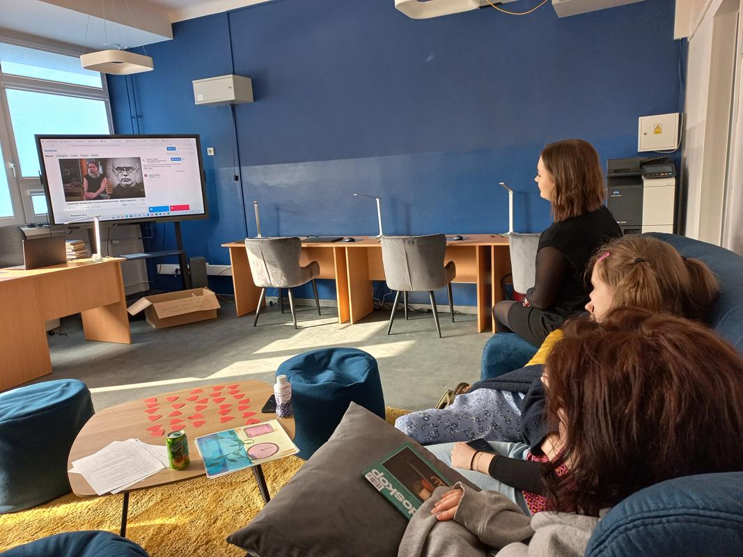 W gablocie obok drzwi biblioteki zawieszany był życiorys patronki danego dnia, a w samej bibliotece można było posłuchać opowieści o tej postaci oraz obejrzeć o niej film.