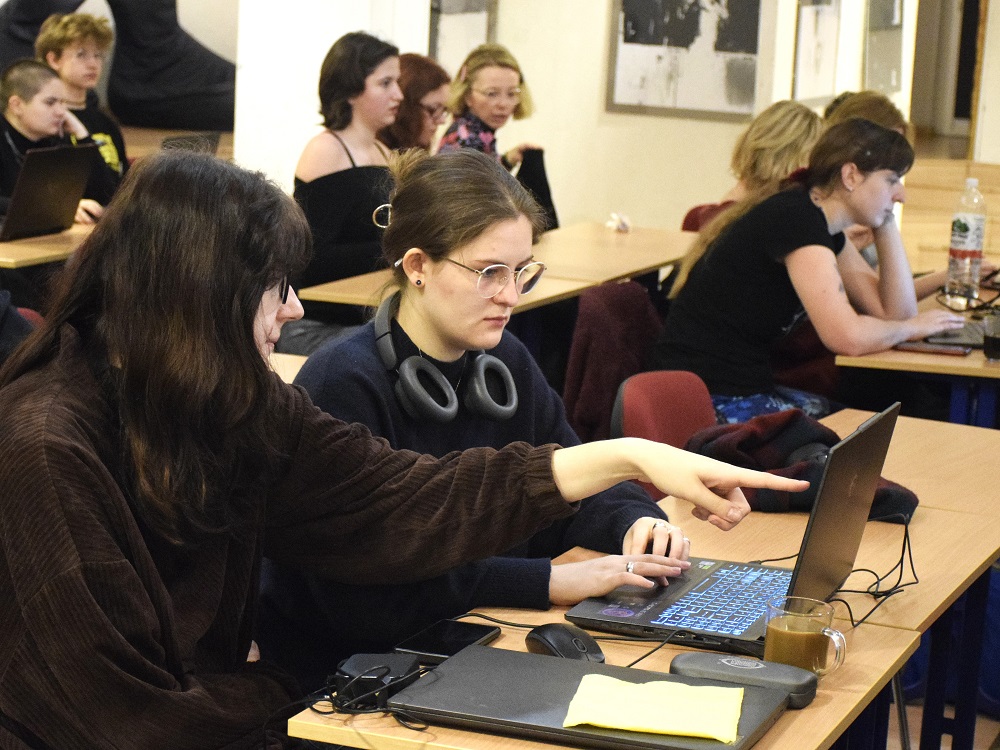 Następny etap to żmudny czas wyboru, obróbki i montażu cyfrowego przygotowanych wcześniej materiałów, czyli praca nad wymarzonym filmem. Pod czujnym okiem zaproszonego specjalisty – p. Kacpra Buratyńskiego, działania montażowe trwały cały następny dzień i zakończyły się późnym wieczorem. Podsumowaniem warsztatów była projekcja przygotowanych filmów, ich omówienie i ocena przez konkursowe jury złożone z prelegentów uczestniczących w warsztatach.