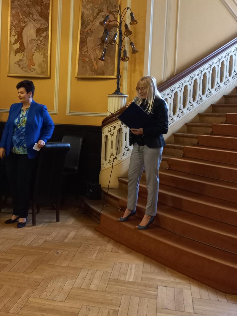 Po krótkich przemowach wszyscy rozeszli się po secesyjnym wnętrzu pałacu, żeby kontemplować sztukę młodych artystów.