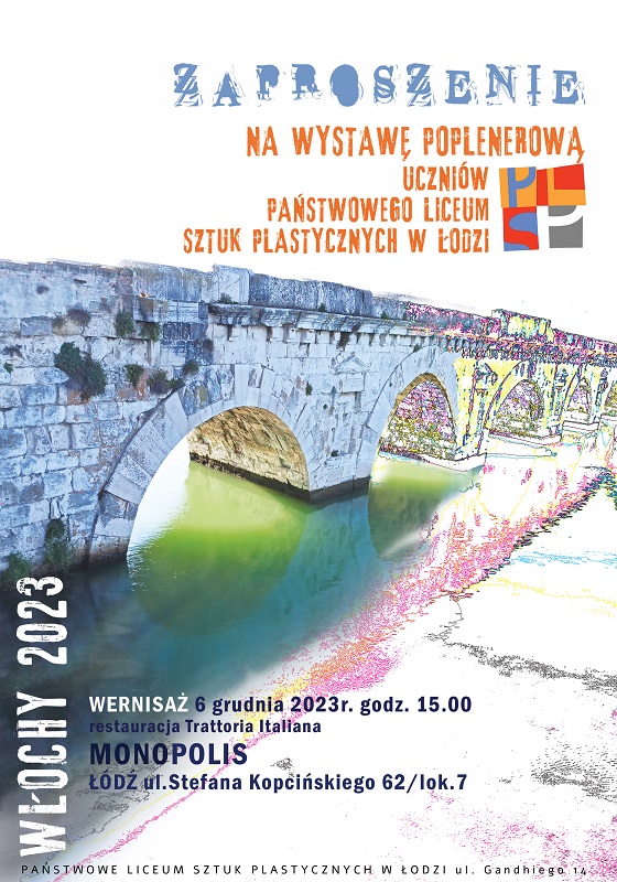 Zapraszamy bardzo serdecznie na wernisaż wystawy poplenerowej naszych uczniów "Włochy 2023" w restauracji Trattoria Iataliana w Monopolis 6 grudnia 2023 r. o godzinie 15.00.