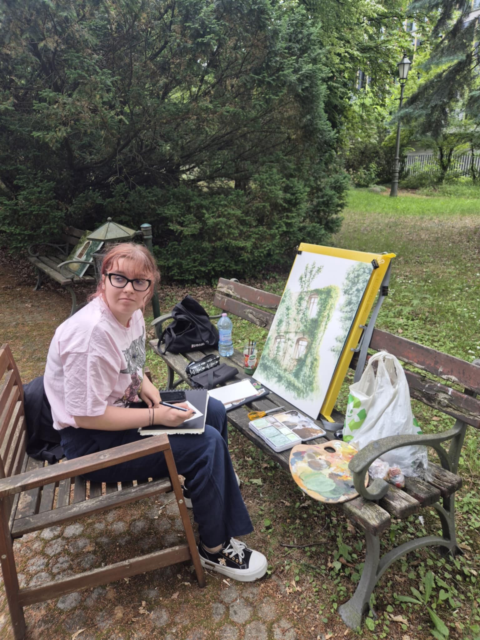Od 2 do 6 czerwca klasy IIa oraz IVc PLSP uczestniczyły w plenerze na terenie Pałacu Roberta Schweikerta przy ul. Piotrkowskiej 262 pod opieką artystyczną p. Żanety Widery-Kondraciuk oraz p. Anny Czekay. Mając do dyspozycji malowniczą przestrzeń mieszczącego się tam parku oraz wnętrze samego pałacu, uczniowie wykonywali szkice oraz prace studyjne. Powstały ciekawe realizacje łączące różnorodne elementy.
