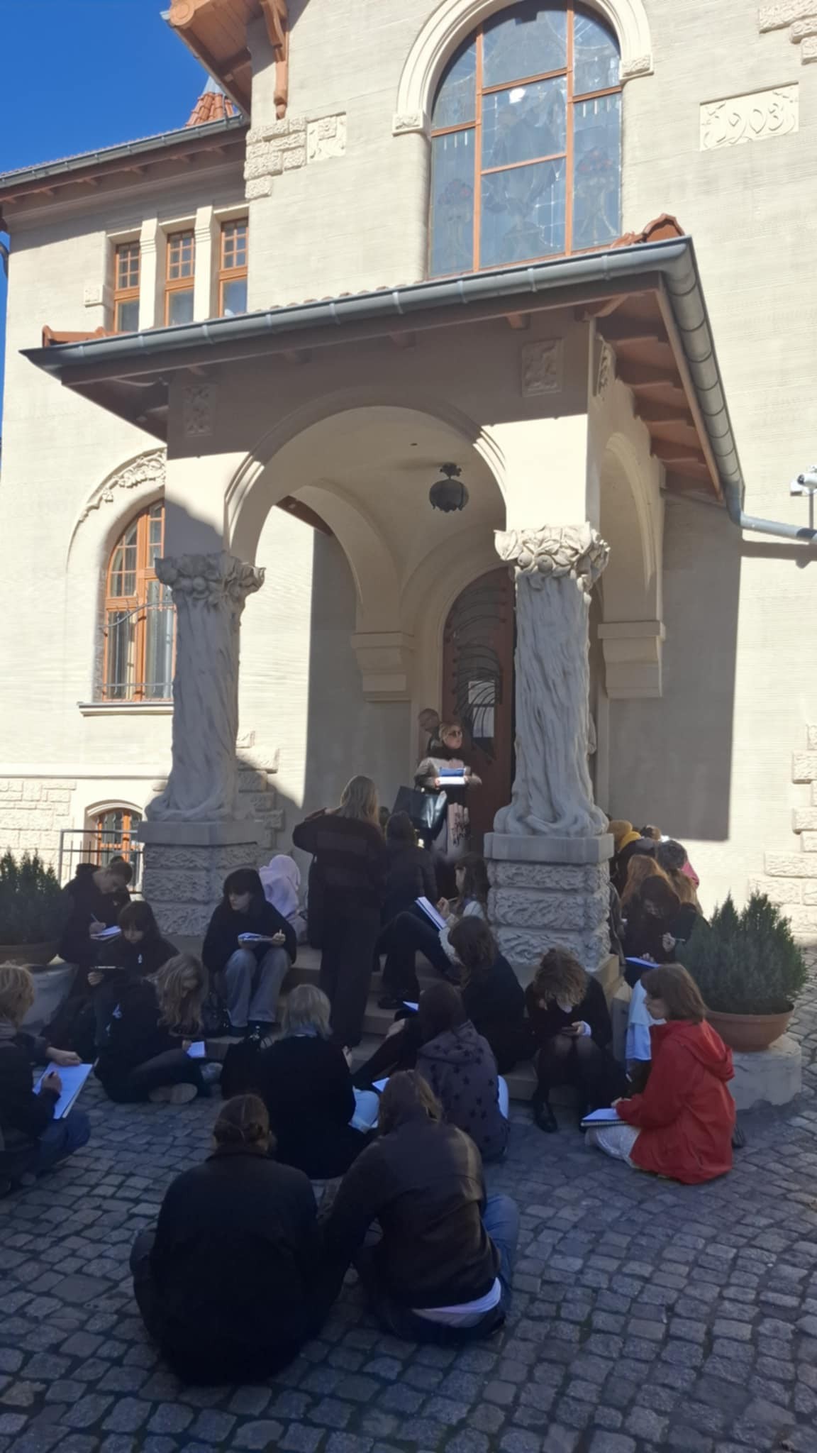 W czwartek uczniowie i uczennice ruszyli szlakiem łódzkiej secesji po ulicy Piotrkowskiej. Spacer skończył się w Galerii Willa – zabytku na skalę europejską, by wnikliwie przeanalizować jej elementy architektoniczne i wykonać szkice interesujących detali. Można było także zobaczyć dwie wystawy czasowe – Karoliny Jarzębak oraz Jana Mioduszewskiego. Pierwsza z nich porusza problem uzależnienia od internetu i telefonów. Druga natomiast pokazuje fascynację zabytkowymi meblami oraz manierystyczną fantazją.