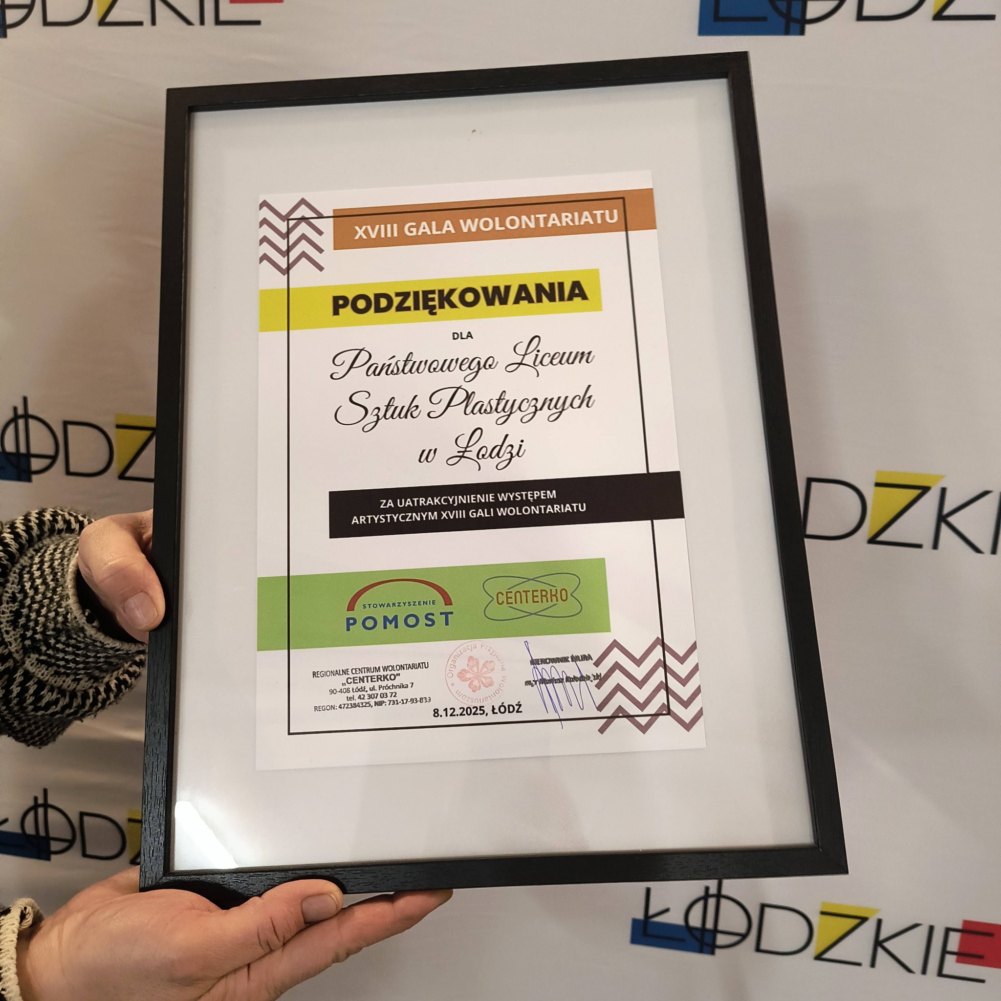 Państwowe Liceum Sztuk Plastycznych w Łodzi miało przyjemność uczestniczyć w XVIII Gali Wolontariatu zorganizowanej przez Regionalne Centrum Wolontariatu „Centerko”. Tegoroczne święto odbyło się 8 grudnia w Teatrze V6.