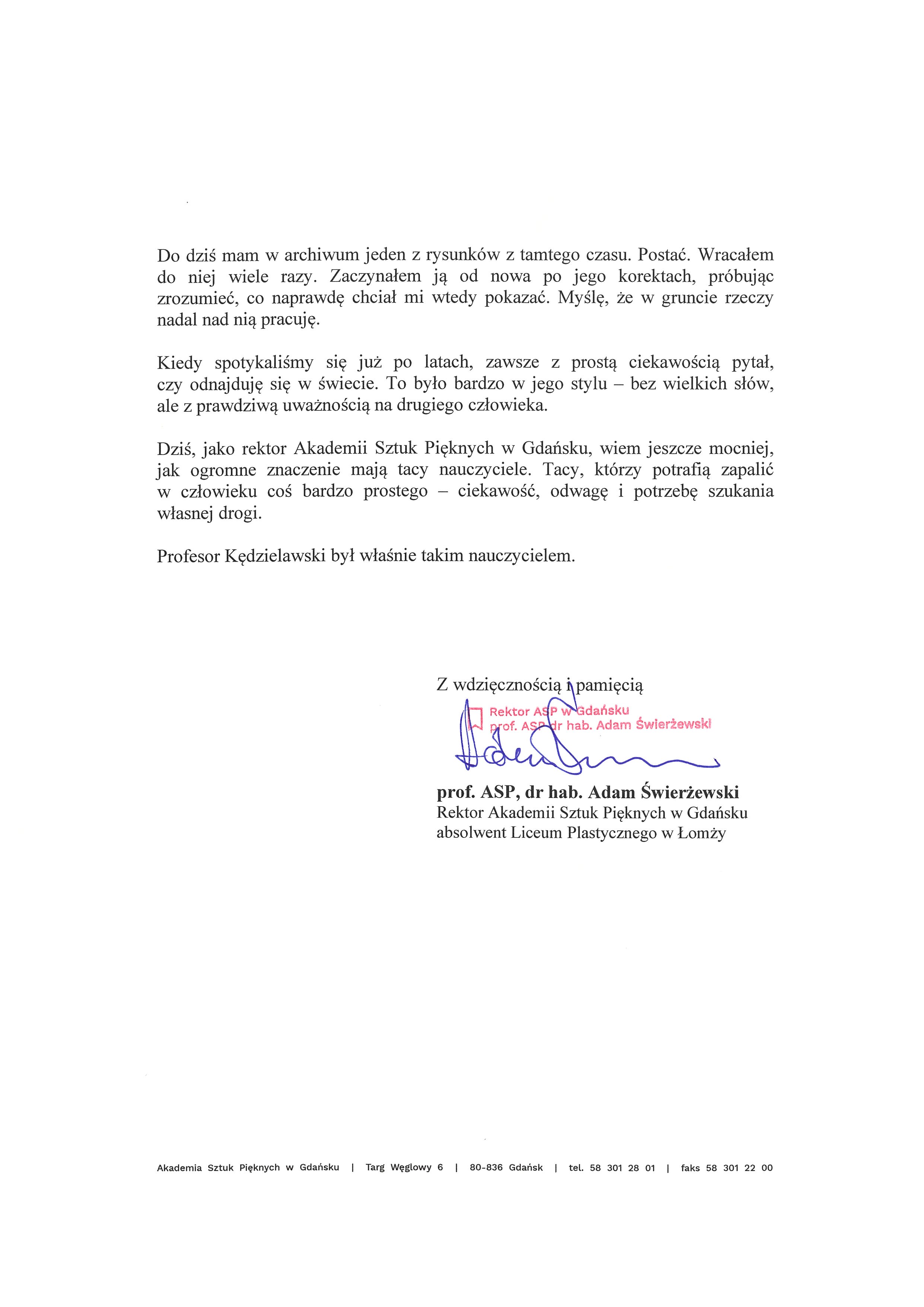 List Rektora Akademii Sztuk Pięknych w Gdańsku